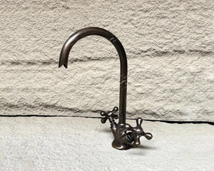 Aged Bronze Gooseneck Bathroom Faucet – Oil Rubbed Bronze with Cross Handles