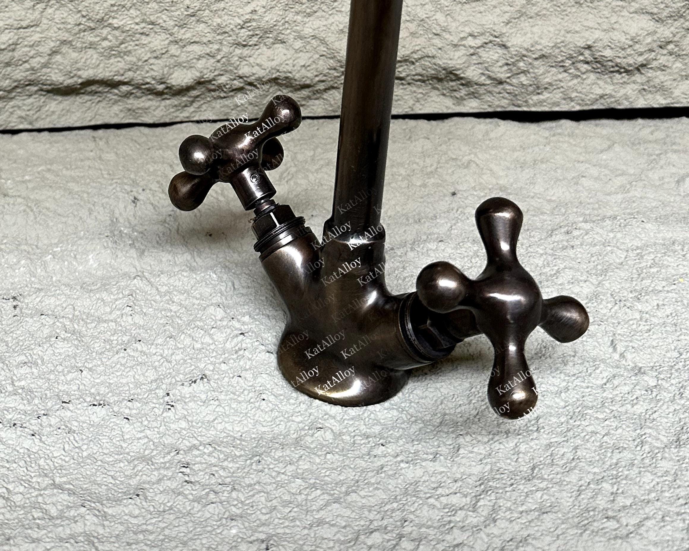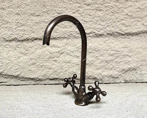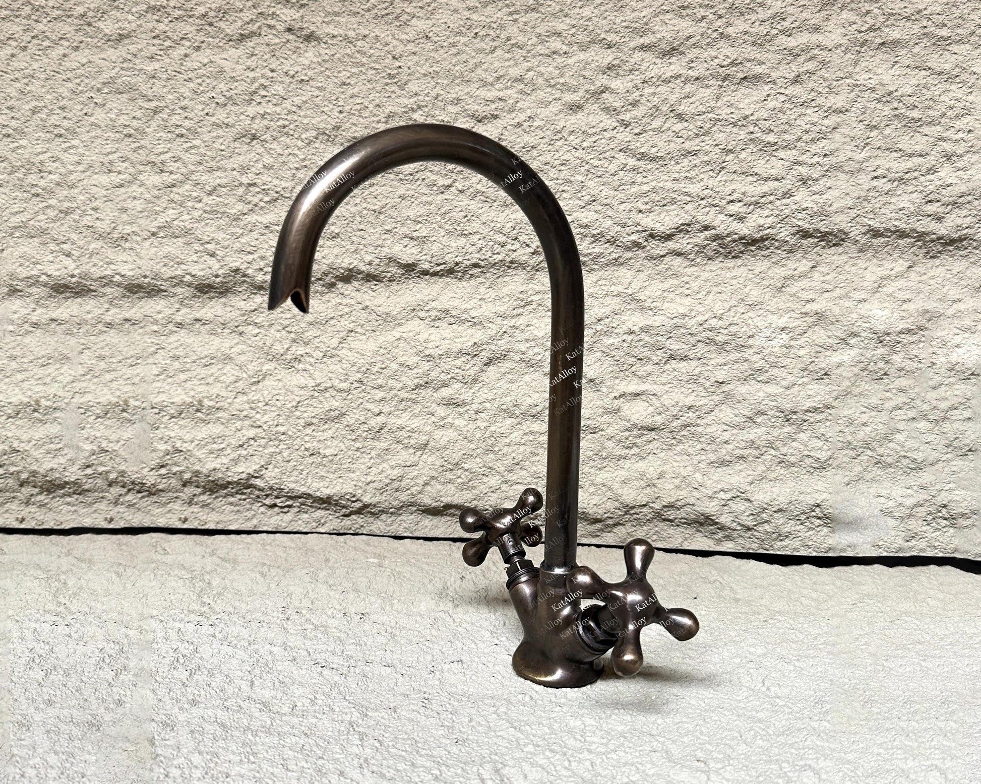 Oil Rubbed Bronze bathroom Faucet, Bronze Brass Bathroom Faucet, Aged Bronze Gooseneck Bathroom Faucet with Cross Handles