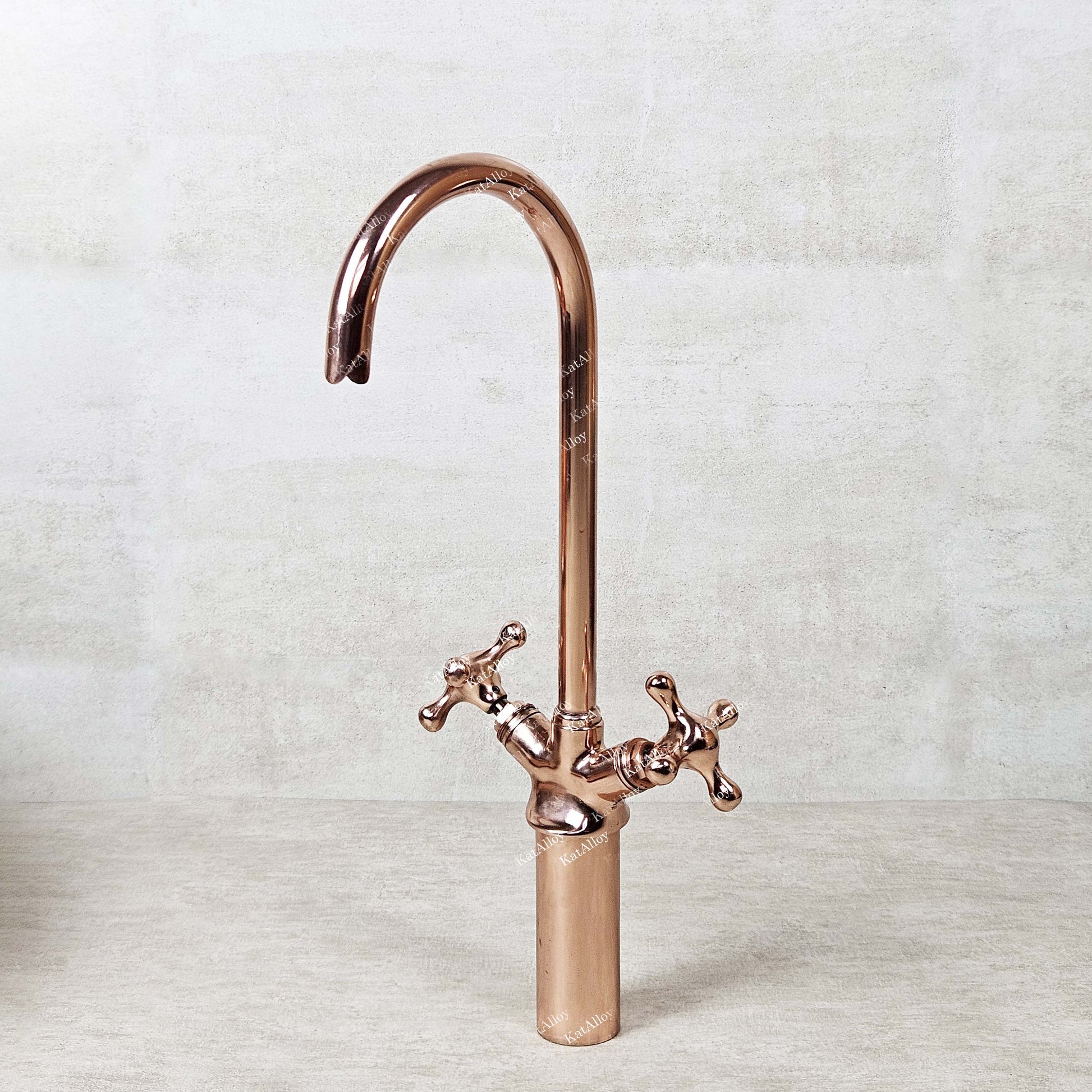Copper bathroom Faucet for Vessel Sinks, Copper Coated Bathroom Faucet, Copper Gooseneck Bathroom Faucet