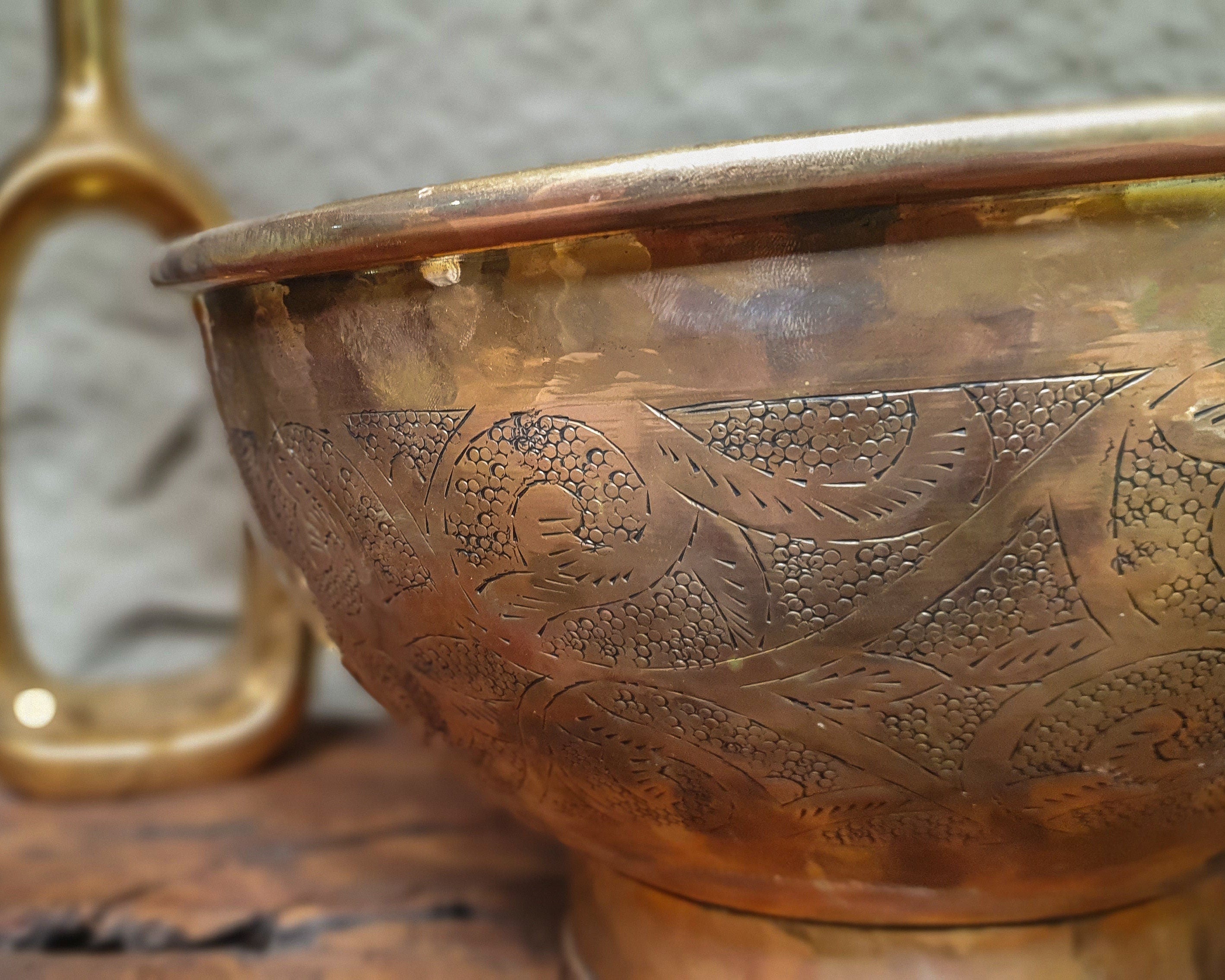 Engraved Brass Vessel Sink – Antique Round Bathroom Basin