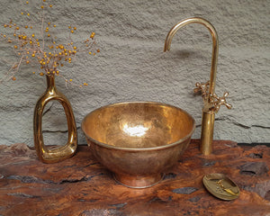 A: Our sinks are handcrafted from high-quality materials such as solid copper, brass, the material is mentioned in the product title.