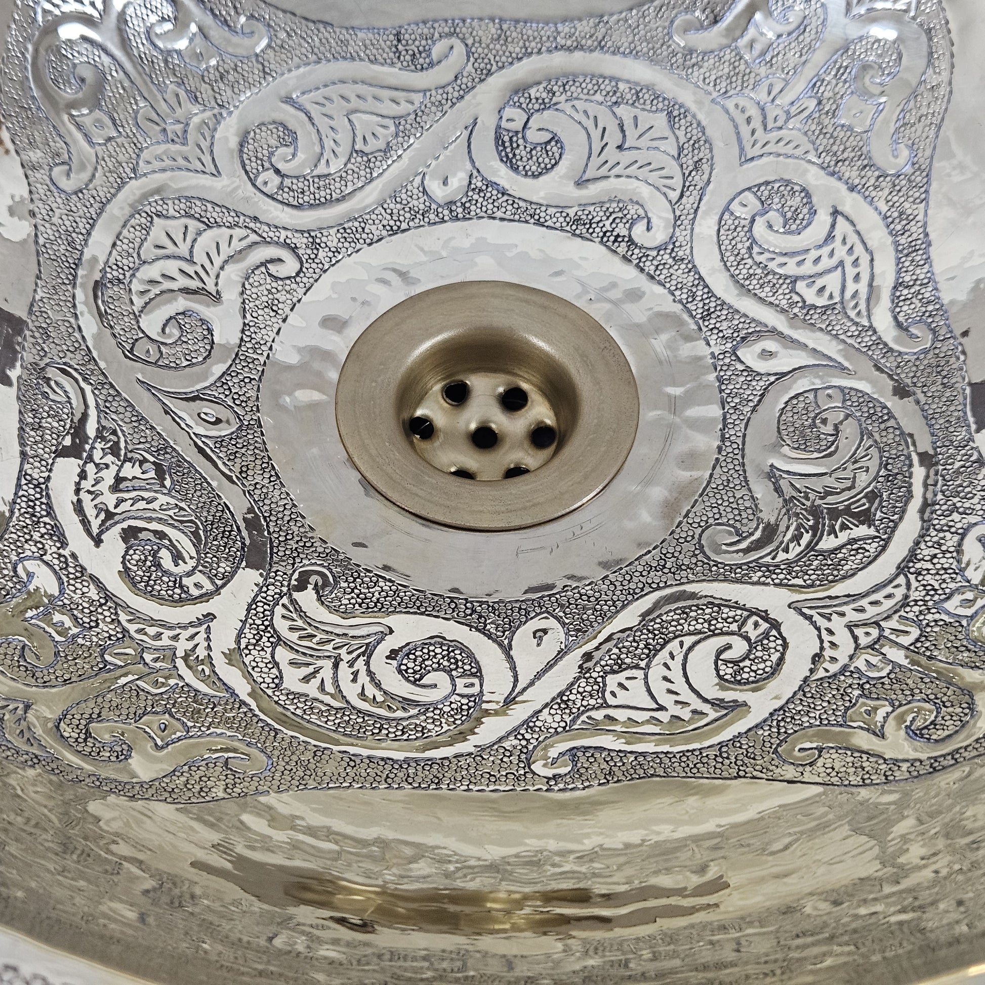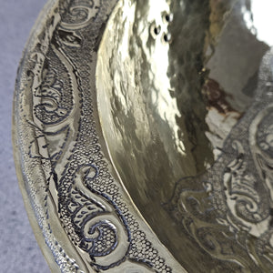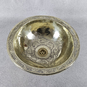 Engraved Round Brass Sink, Handcrafted Engraved Brass Sink, Engraved Undermount Bathroom Brass Sink