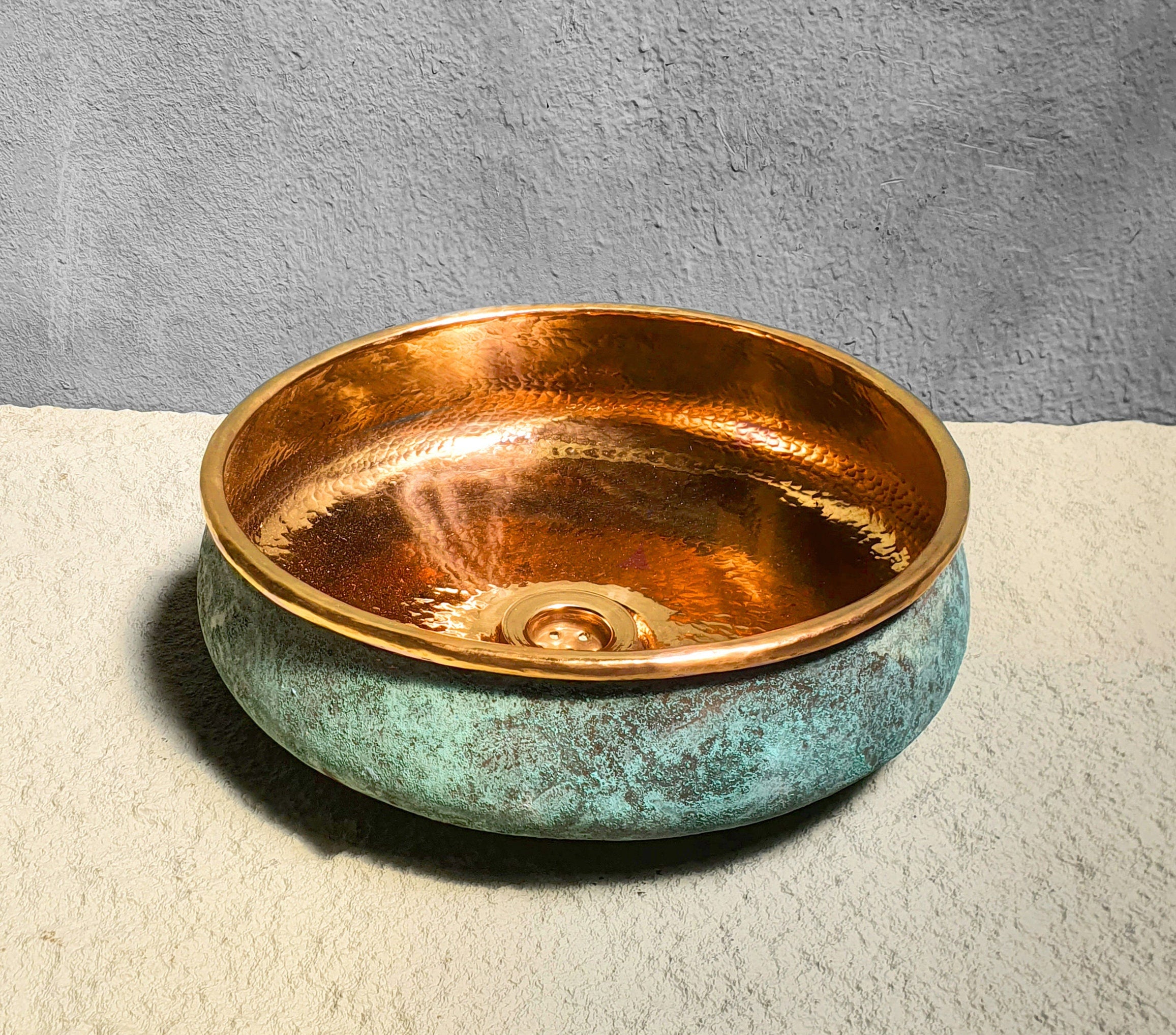 Green Patina Copper Bathroom Sink – Oxidized Round Washbasin
