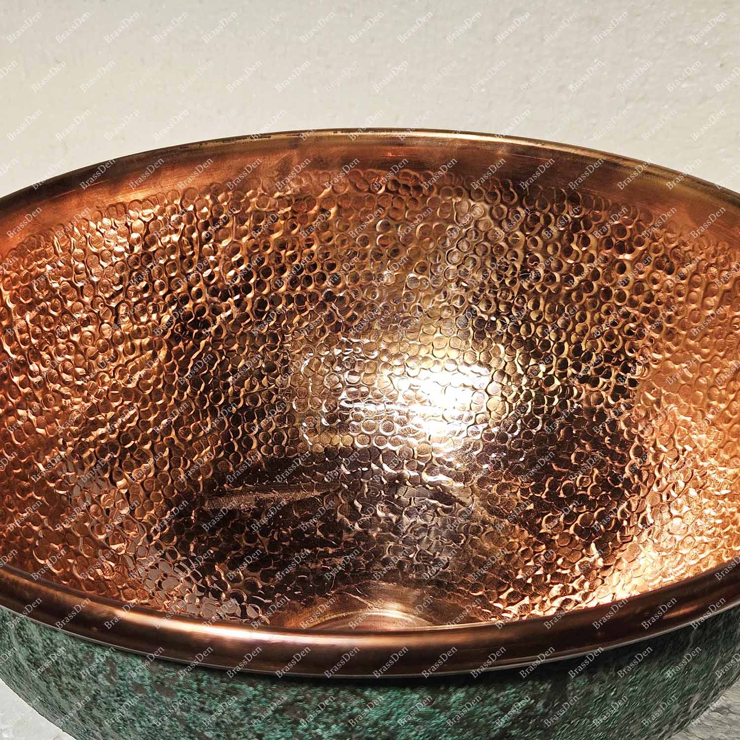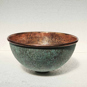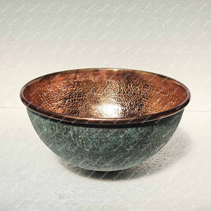 Green Patina Copper Bathroom Sink, Hammered Copper Sink, Round Copper Vessel Sink Vanity, Copper Bowl Sink with Drain