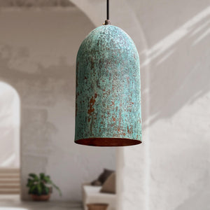 Green Patina Farmhouse Light Fixture, Oxidized Copper Pendant Light.