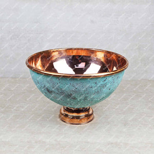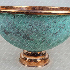 Oxidized Copper Bathroom Vessel Sink ,Green Patina Bowl Sink, Round Verdigris Copper Bathroom Sink, Polished Copper Interior Washing Basin