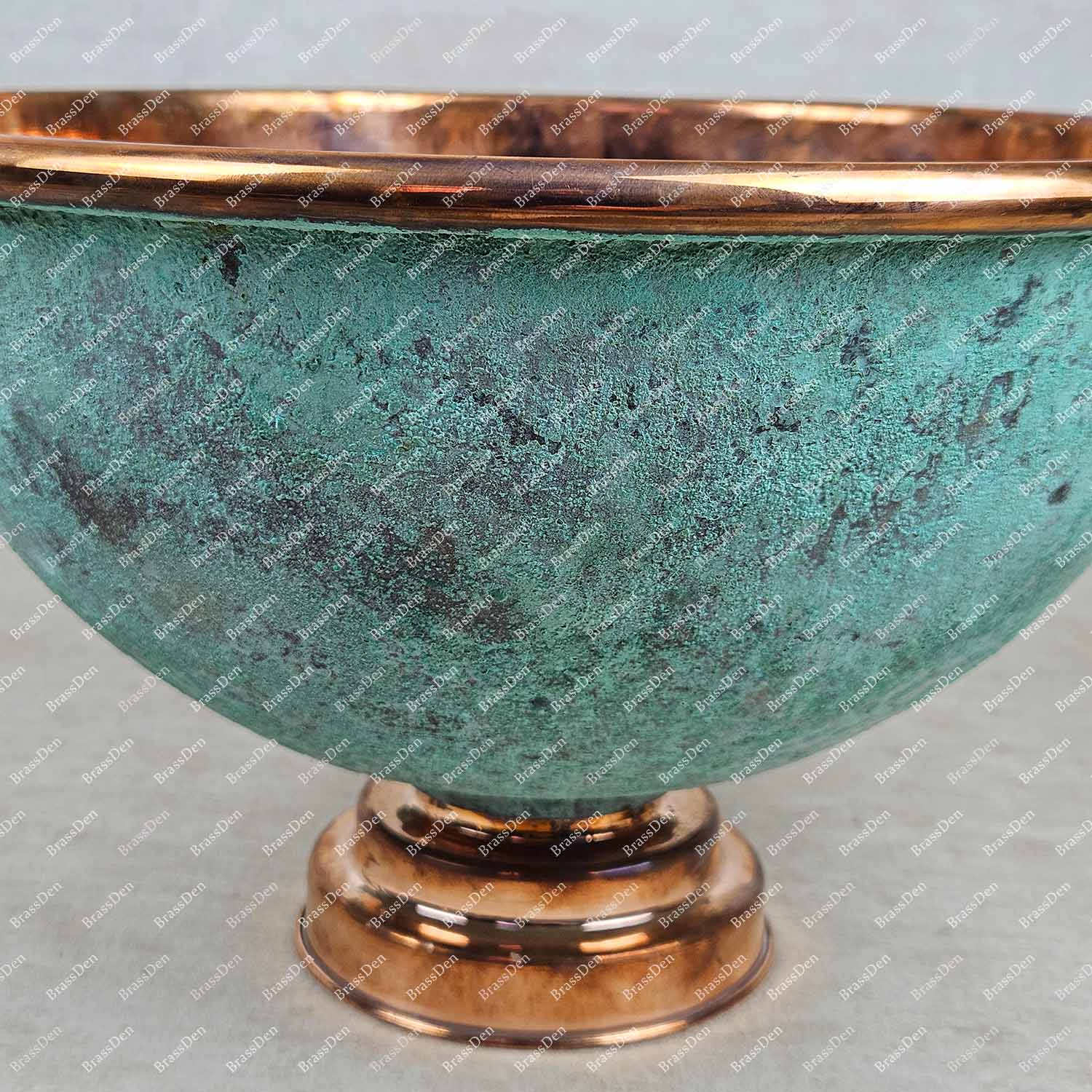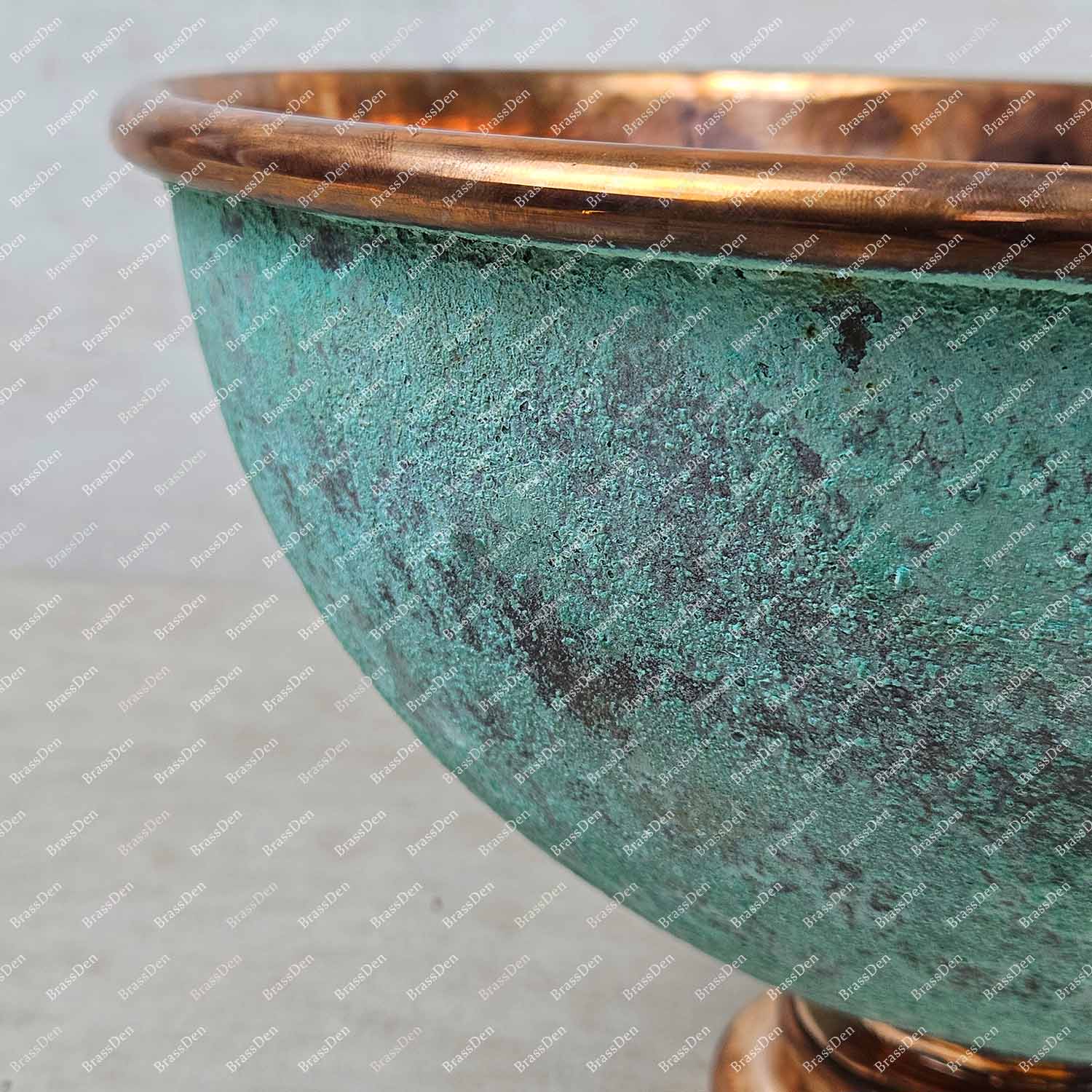 Green Patina Vessel Sink – Round Copper Sink with Polished Interior