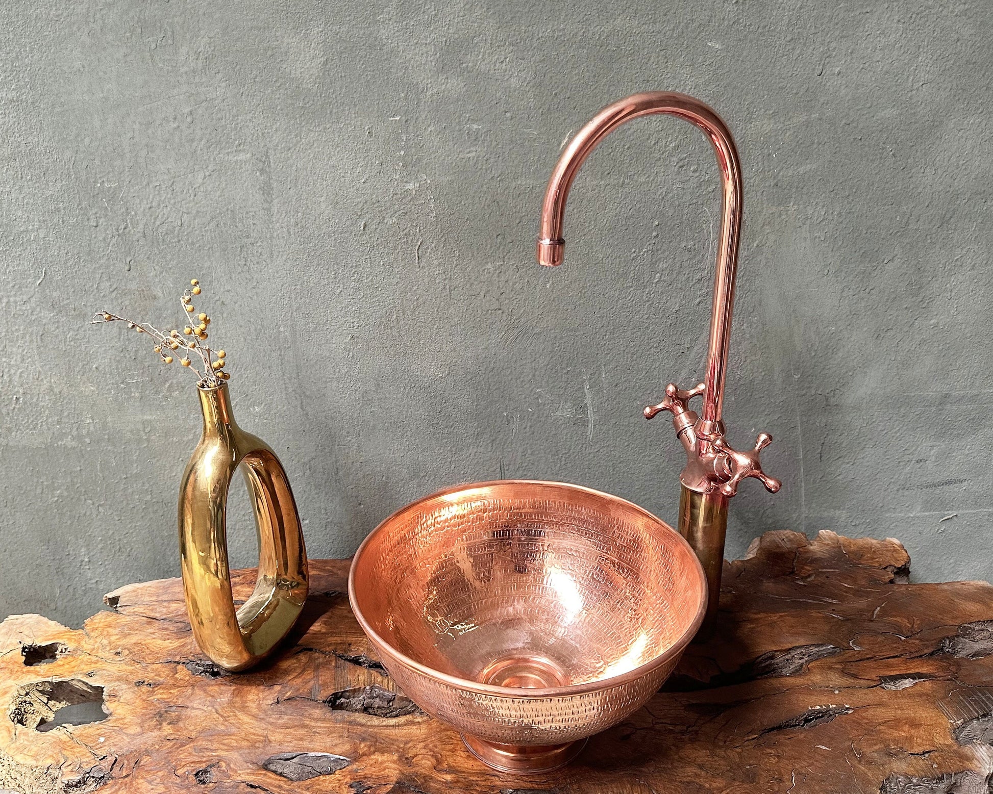 Hammered Copper Vessel Sink – Copper Vanity with Faucet