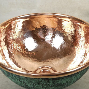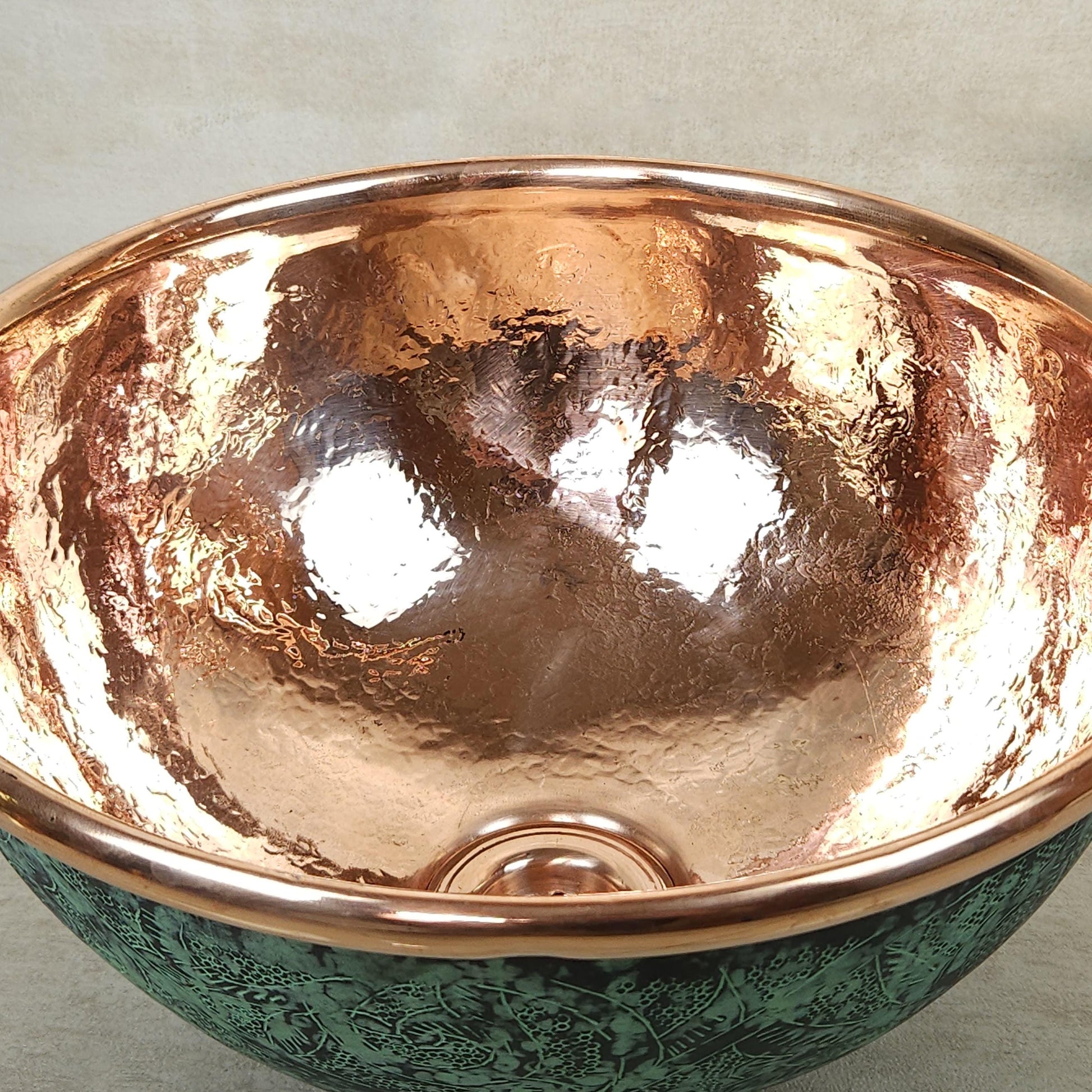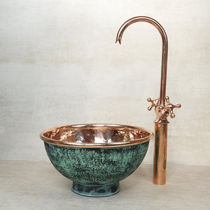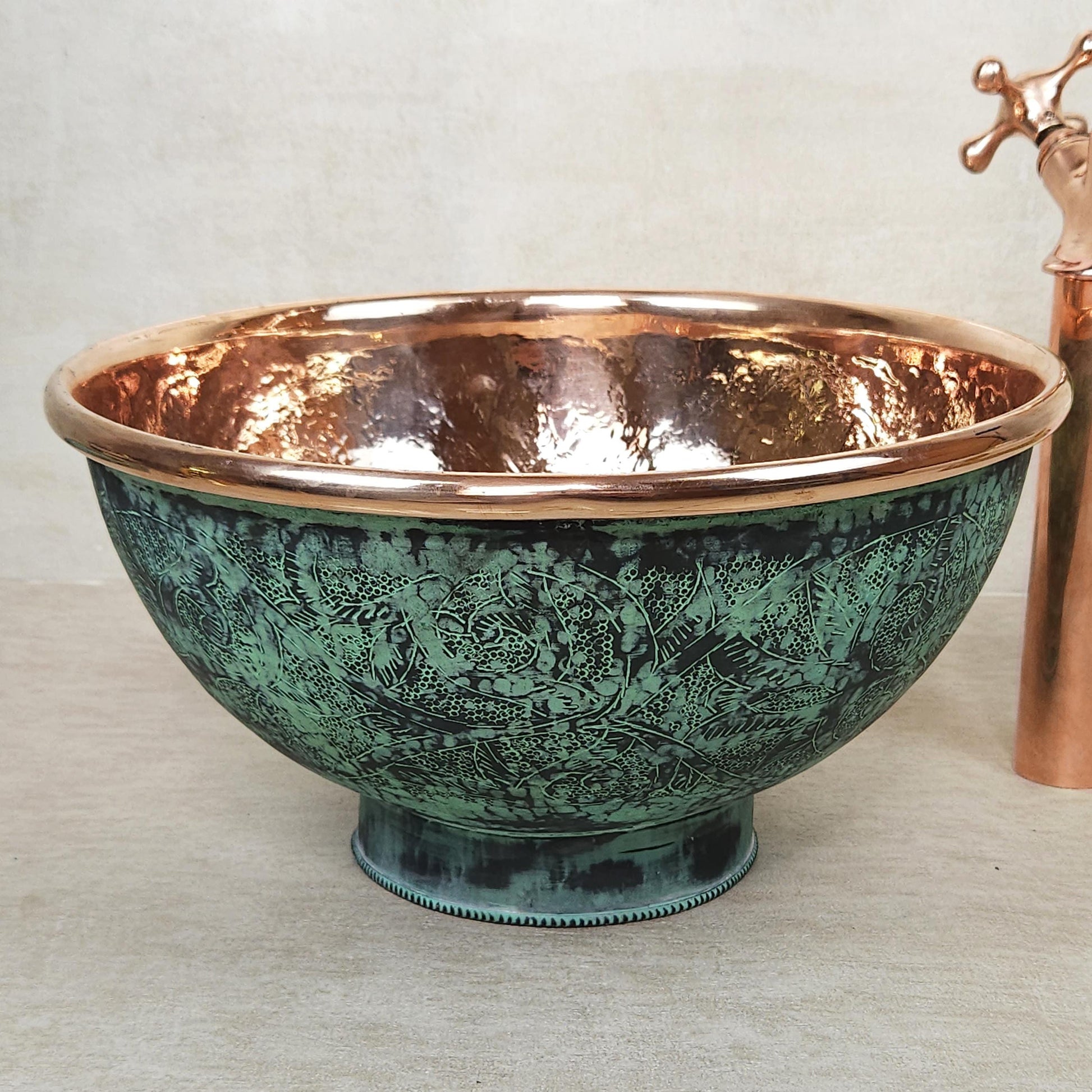 Hand Engraved Green Patina Copper Vessel Sink with Faucet