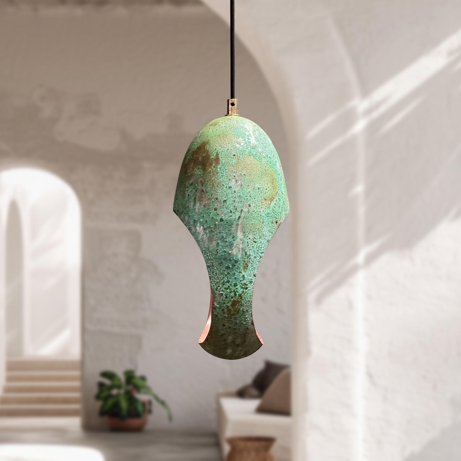 Handmade Green Patina Farmhouse Light – Oval Copper Pendant