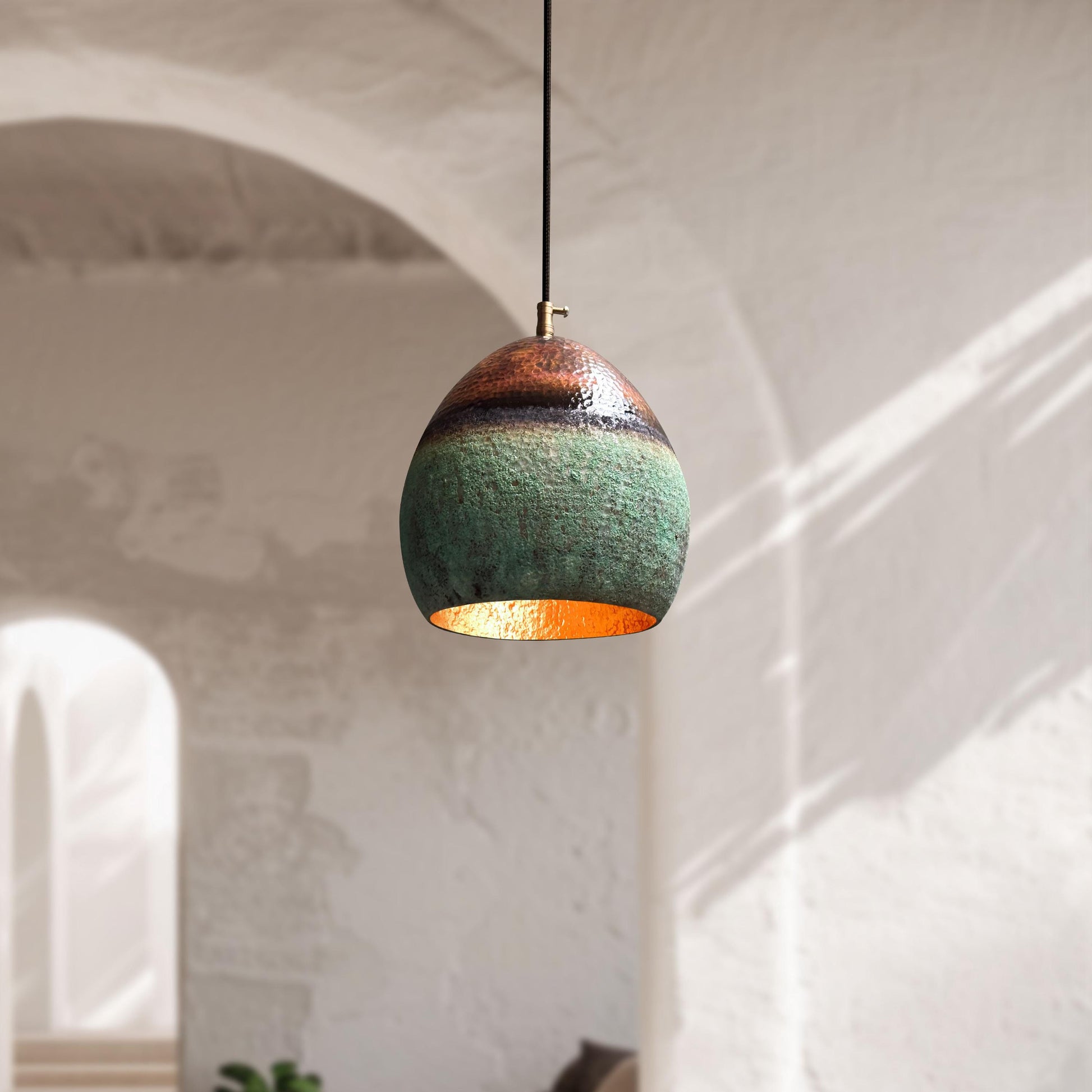 Oxidized Copper Pendant Light, Green Patina Farmhouse Light Fixture, Handmade Copper Ceiling Light
