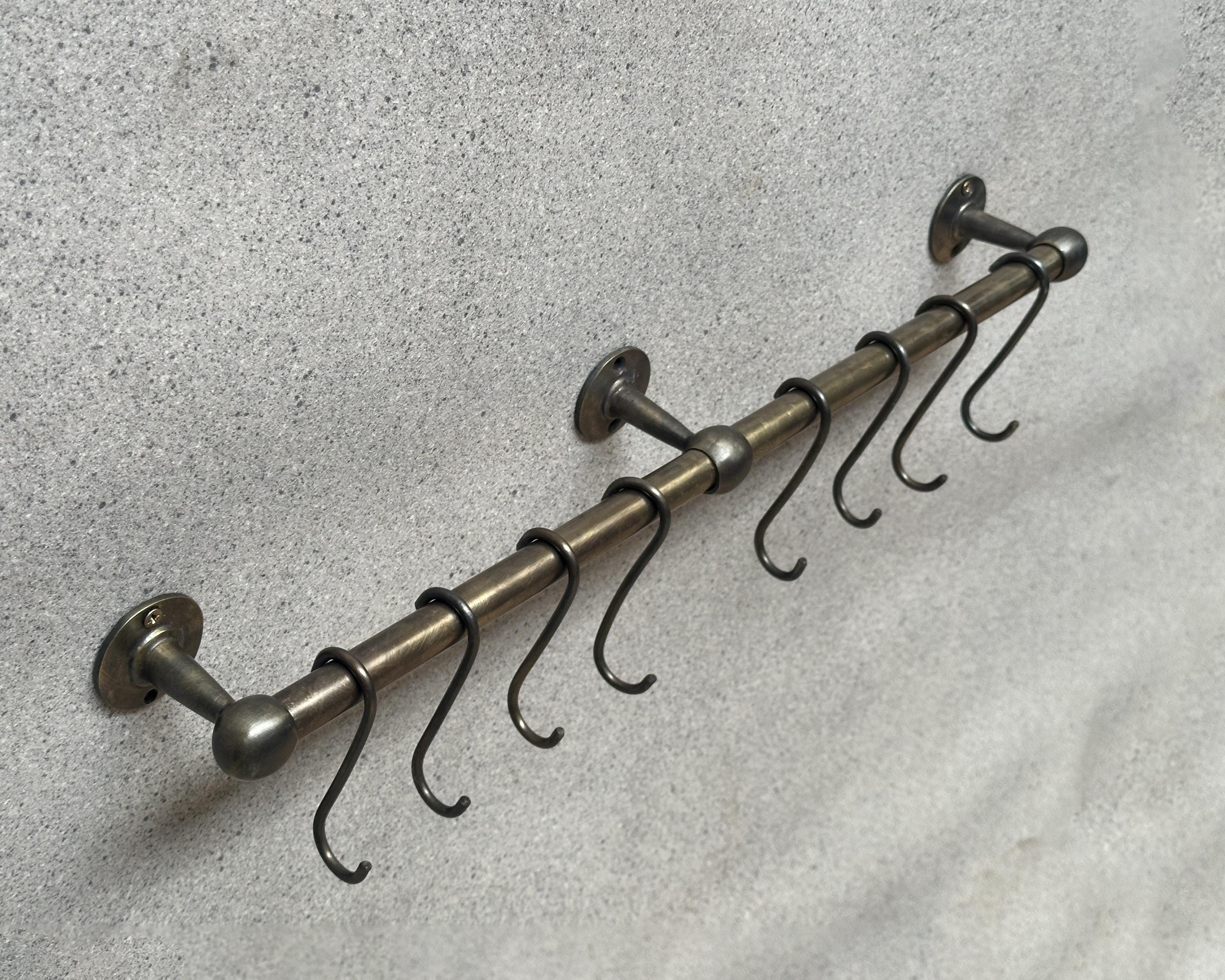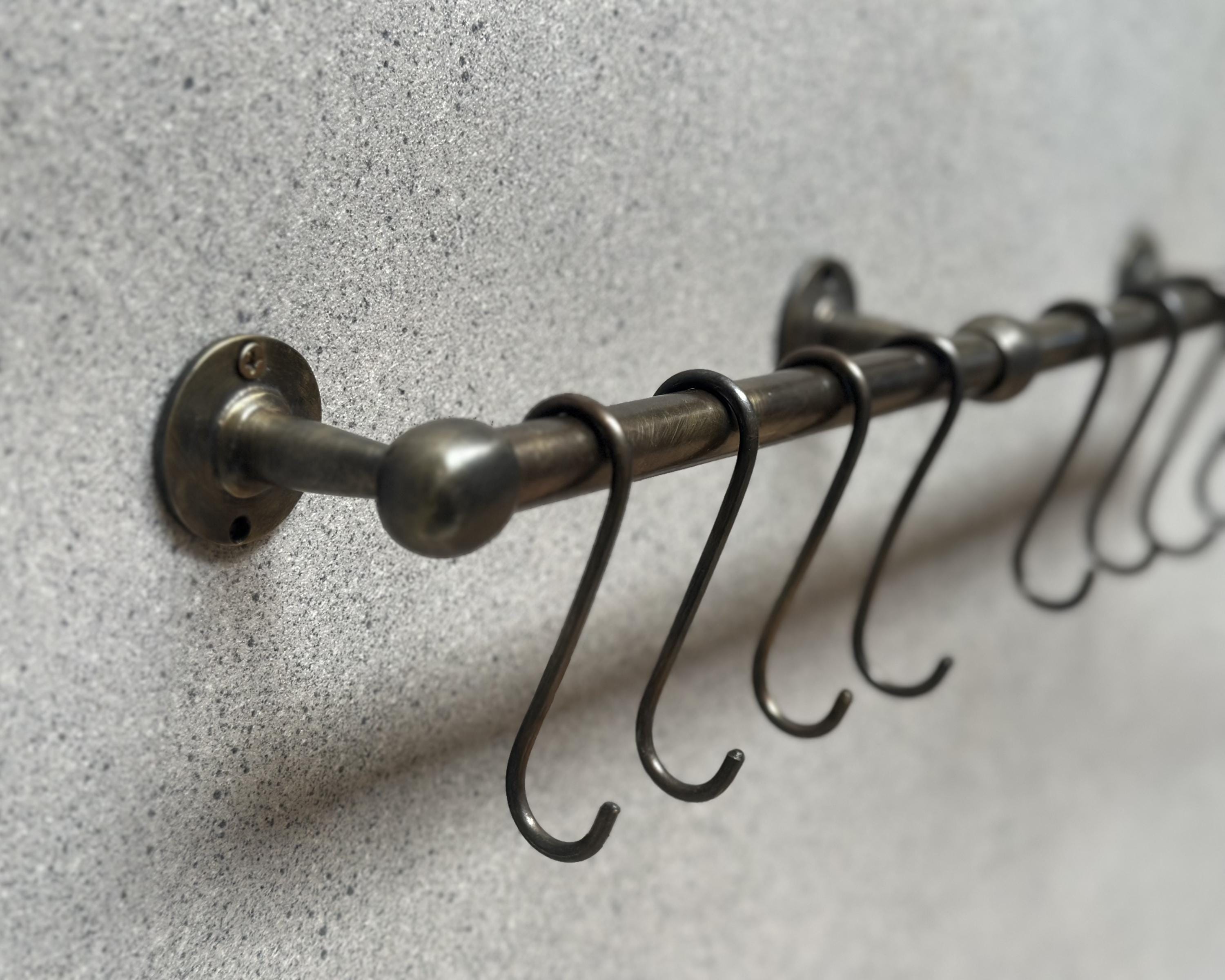 Oil Rubbed Bronze Pot Rail with Hooks – Wall-Mounted Brass Kitchen Organizer