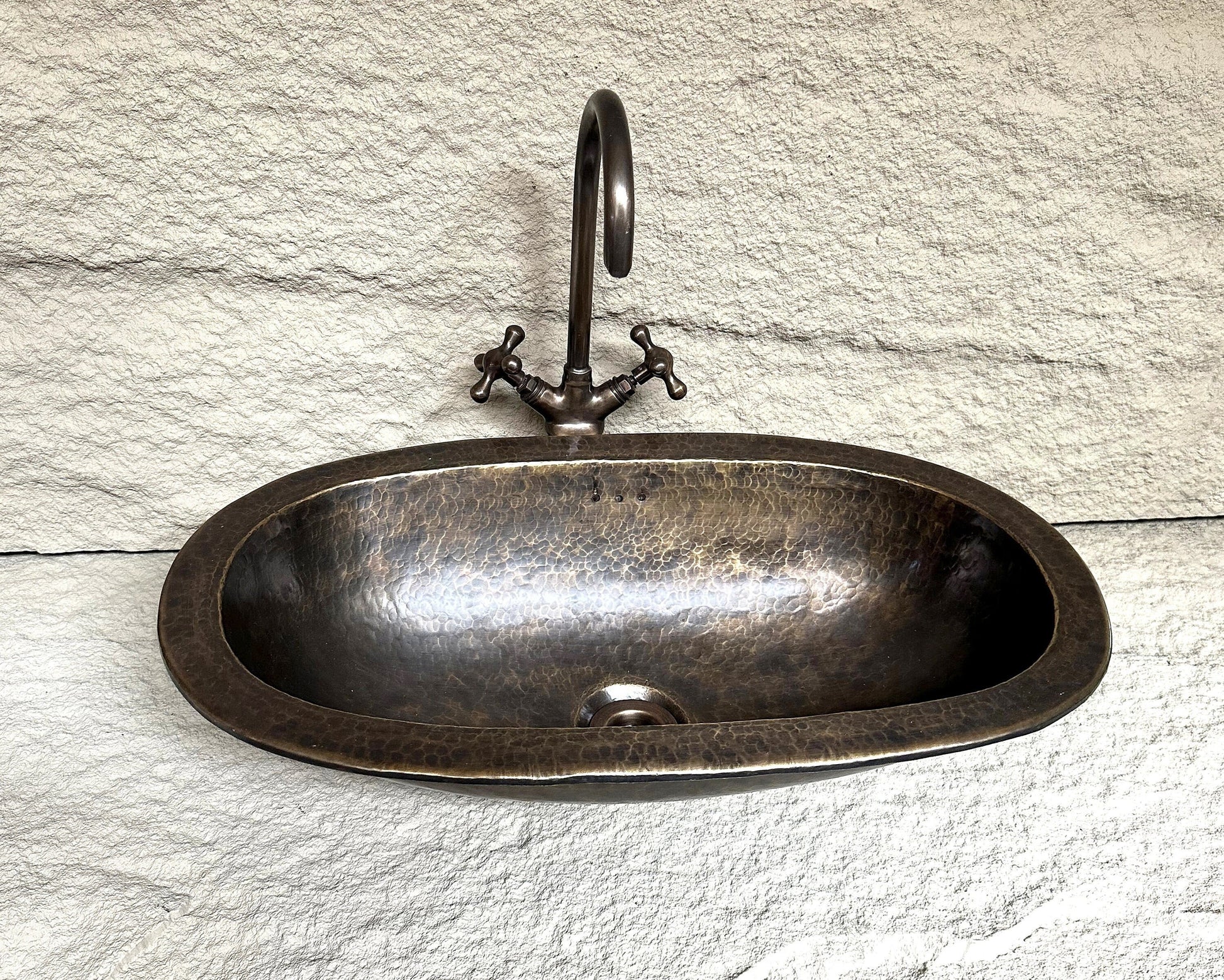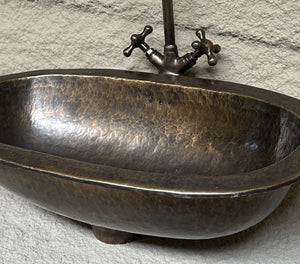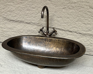 Long Oval Hammered Brass Sink, Handmade Oil Rubbed Bronze Bathroom Sink, Oval Farmhouse Patina Brass Drop in Sink
