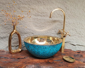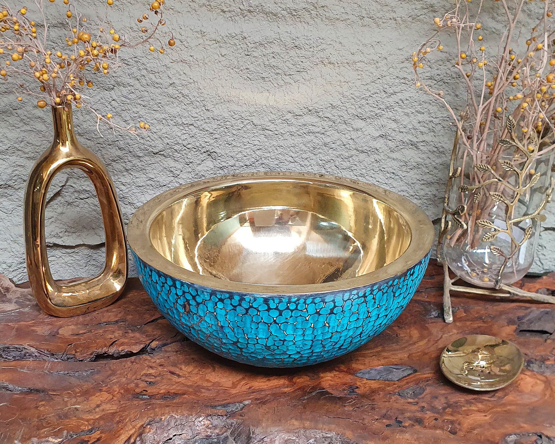 A: Our sinks are handcrafted from high-quality materials such as solid copper, brass, the material is mentioned in the product title.