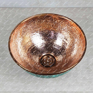 Green Patina Bowl Sink, Oxidized Copper Sink Bathroom, Round Verdigris Copper Bathroom Sink, Hammered Copper Interior Washing Basin