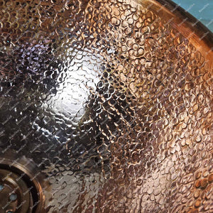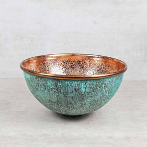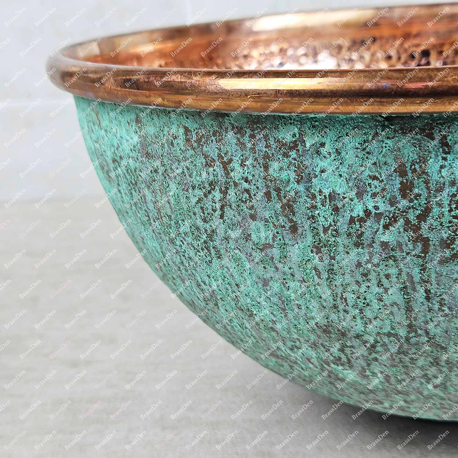 Oxidized Round Hammered Vessel Sink - Green Patina Copper Sink