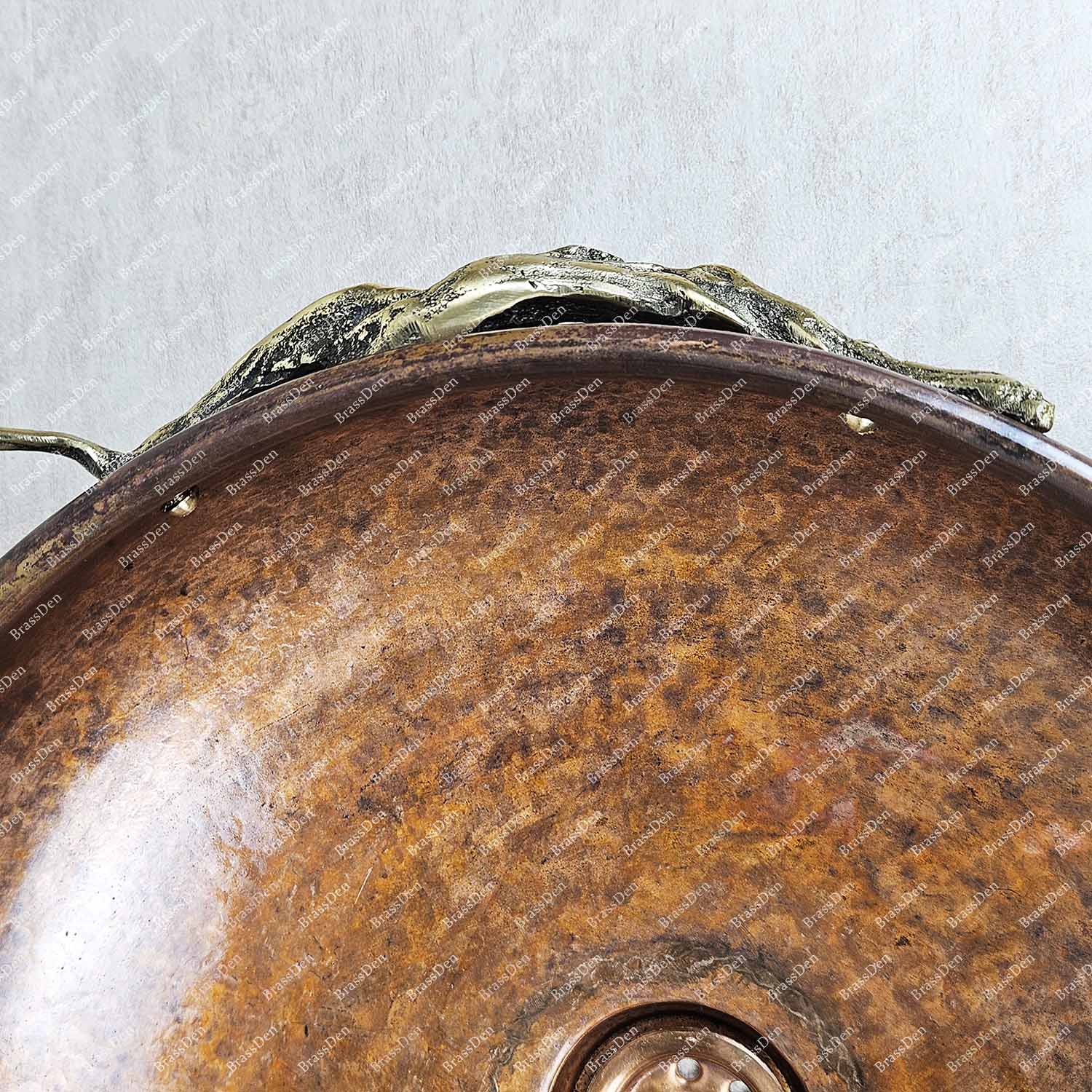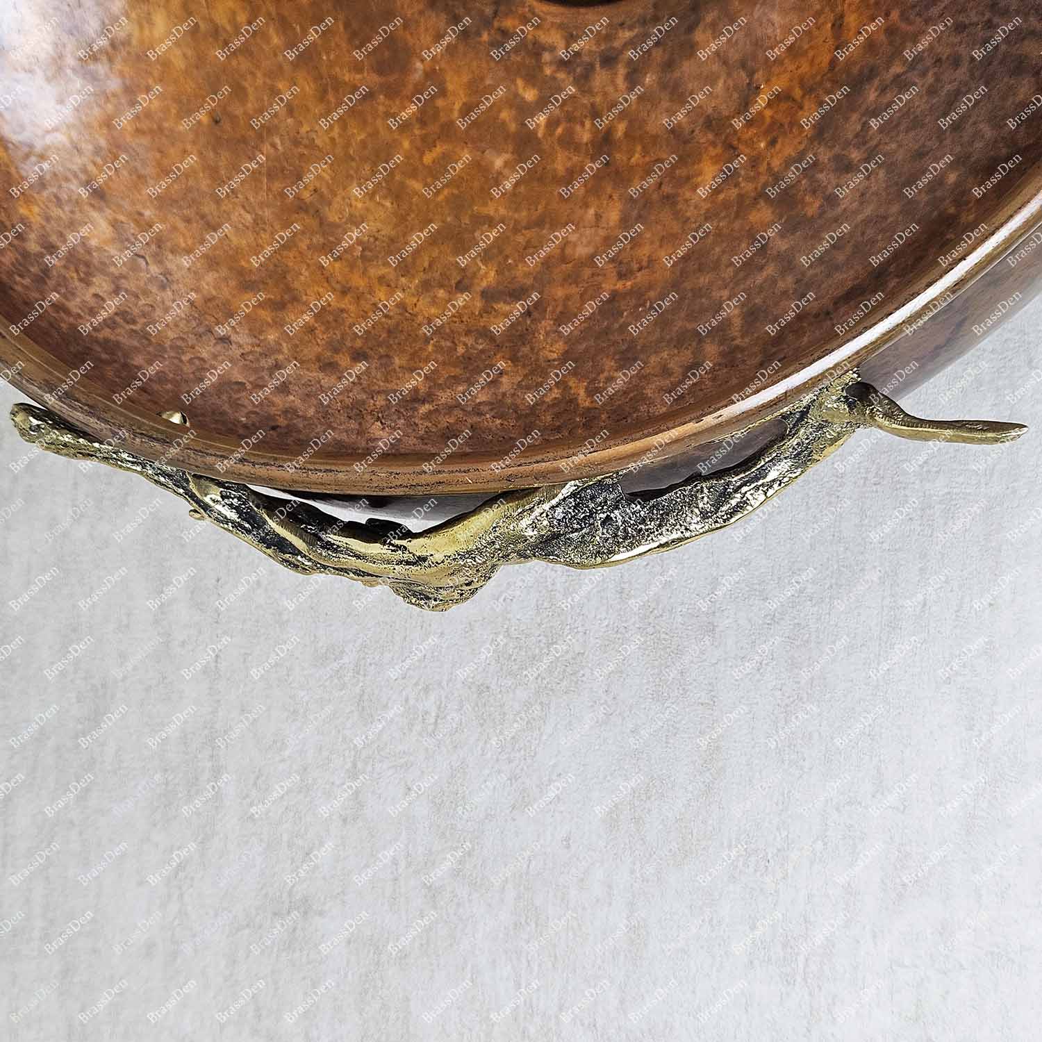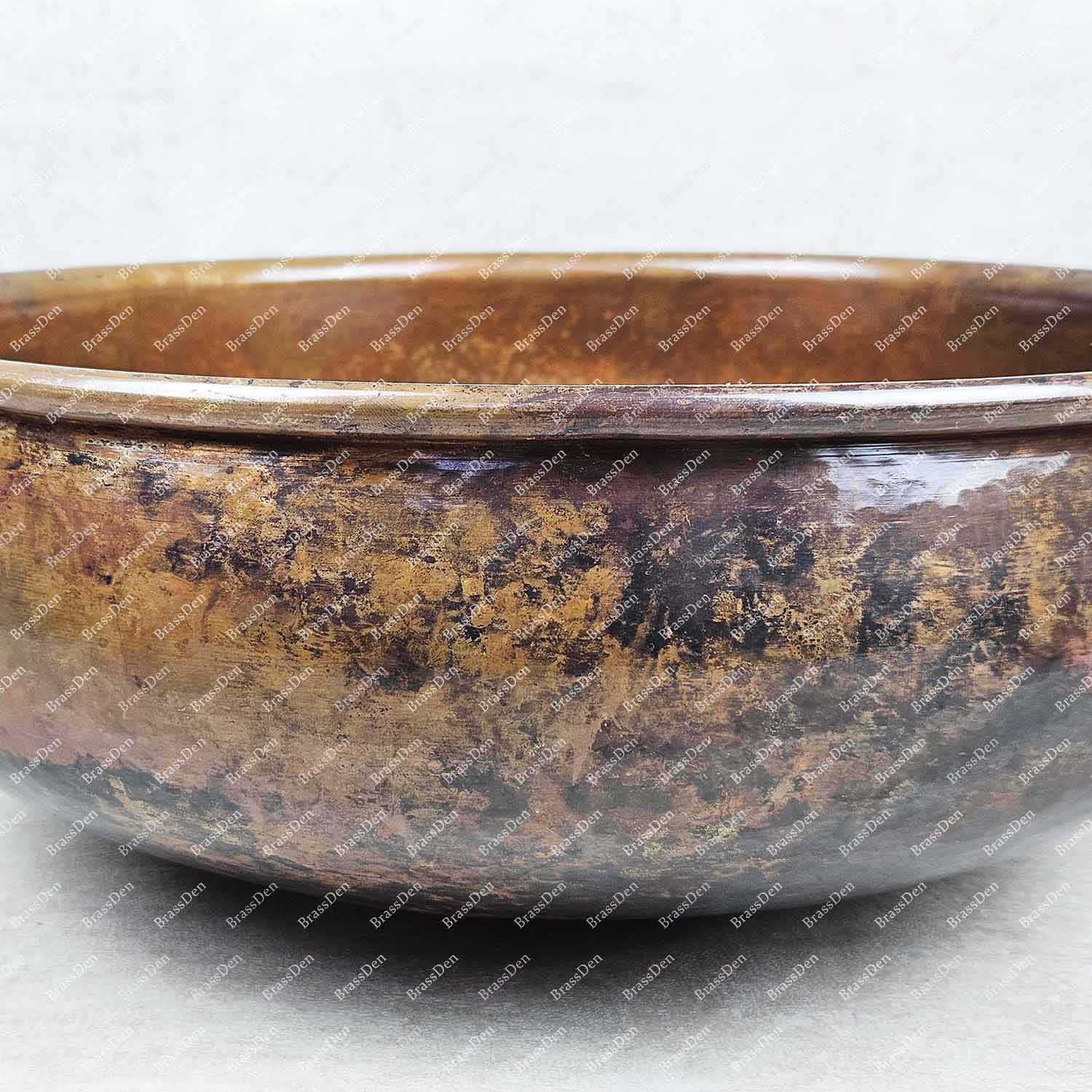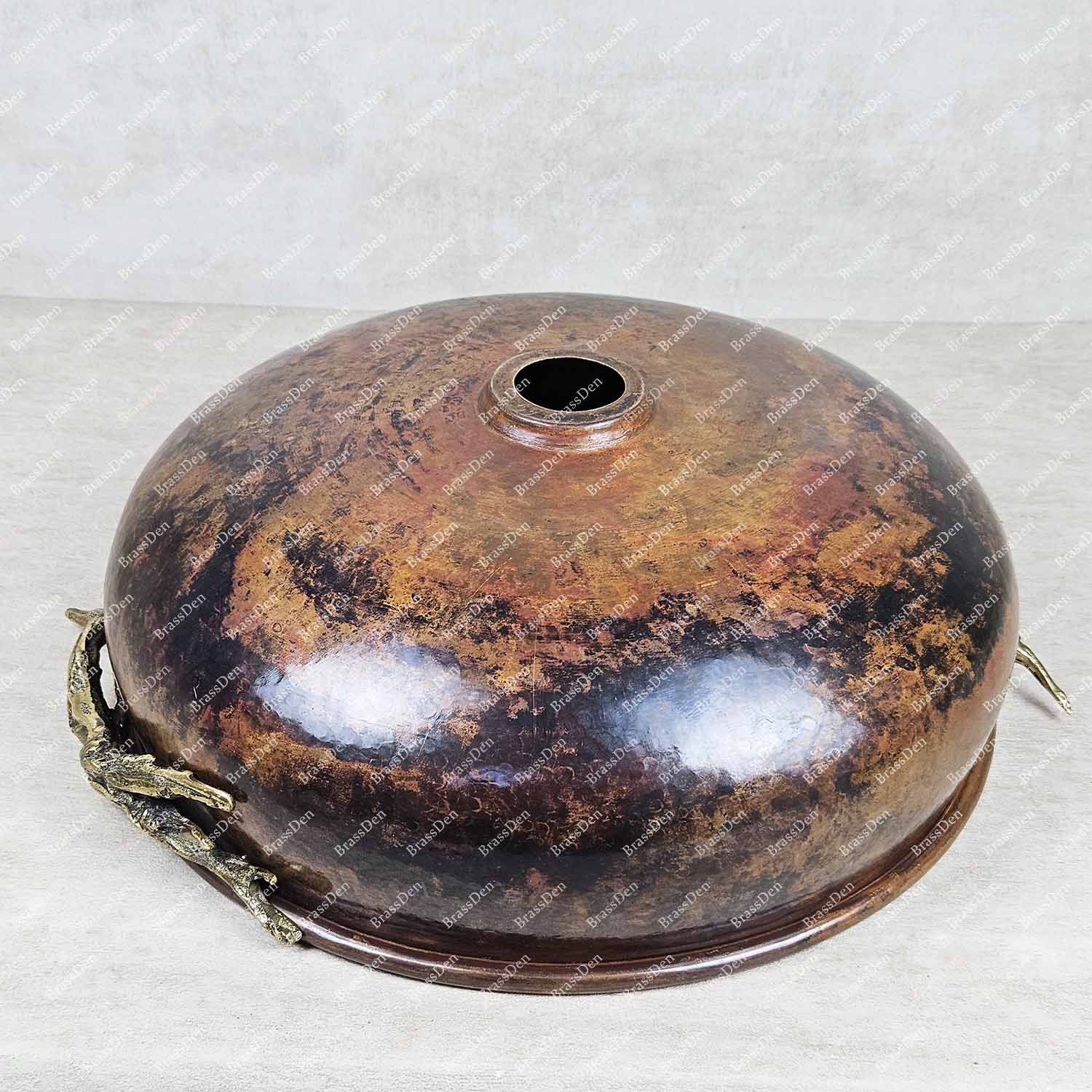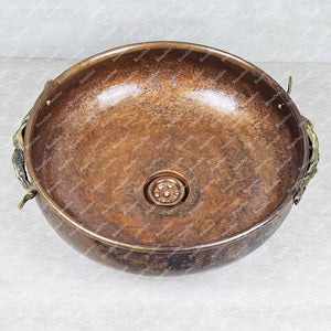 Rustic Copper Bathroom Vessel Sink with Brass Handles, Dark Copper Vessel Sink, Round Patina Copper Wash Basin