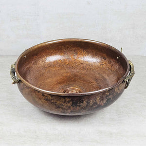 Rustic Copper Bathroom Vessel Sink – Round Patina Wash Basin with Brass Handles