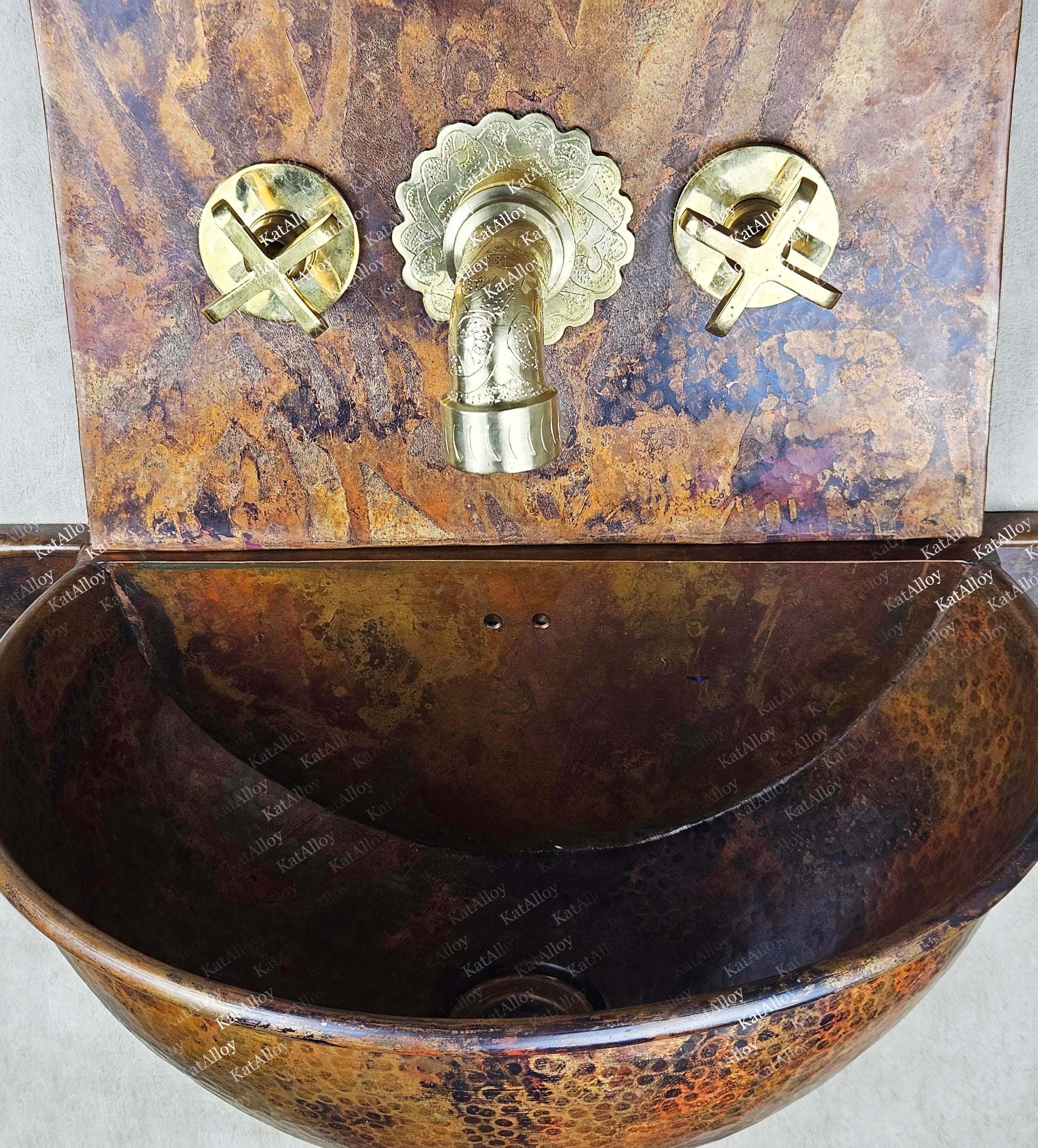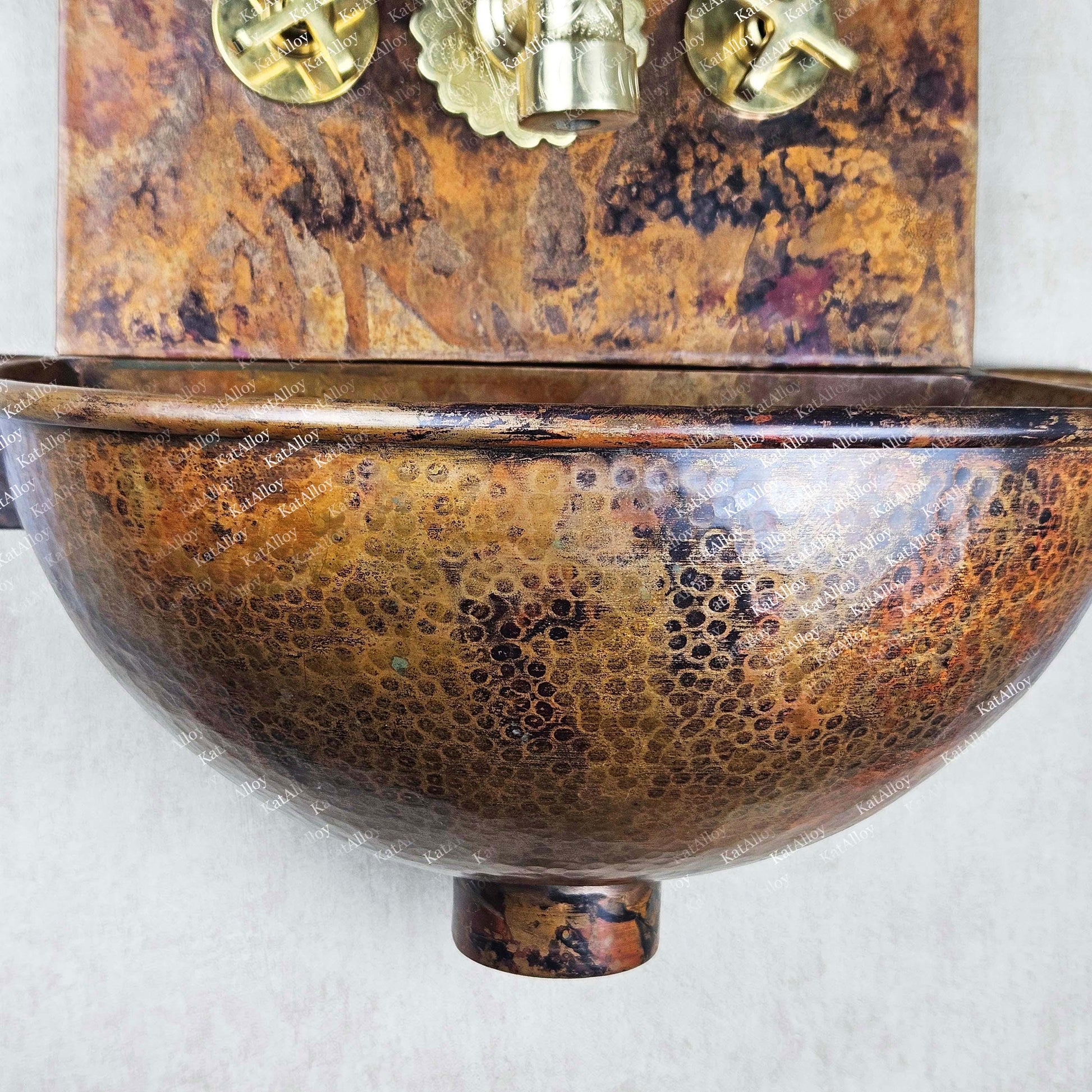 Rustic Copper Wall-Mounted Sink with Engraved Brass Faucet