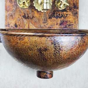 Wall Mounted Copper Bathroom Sink, Rustic Hung Basin With Engraved Brass Faucet