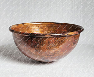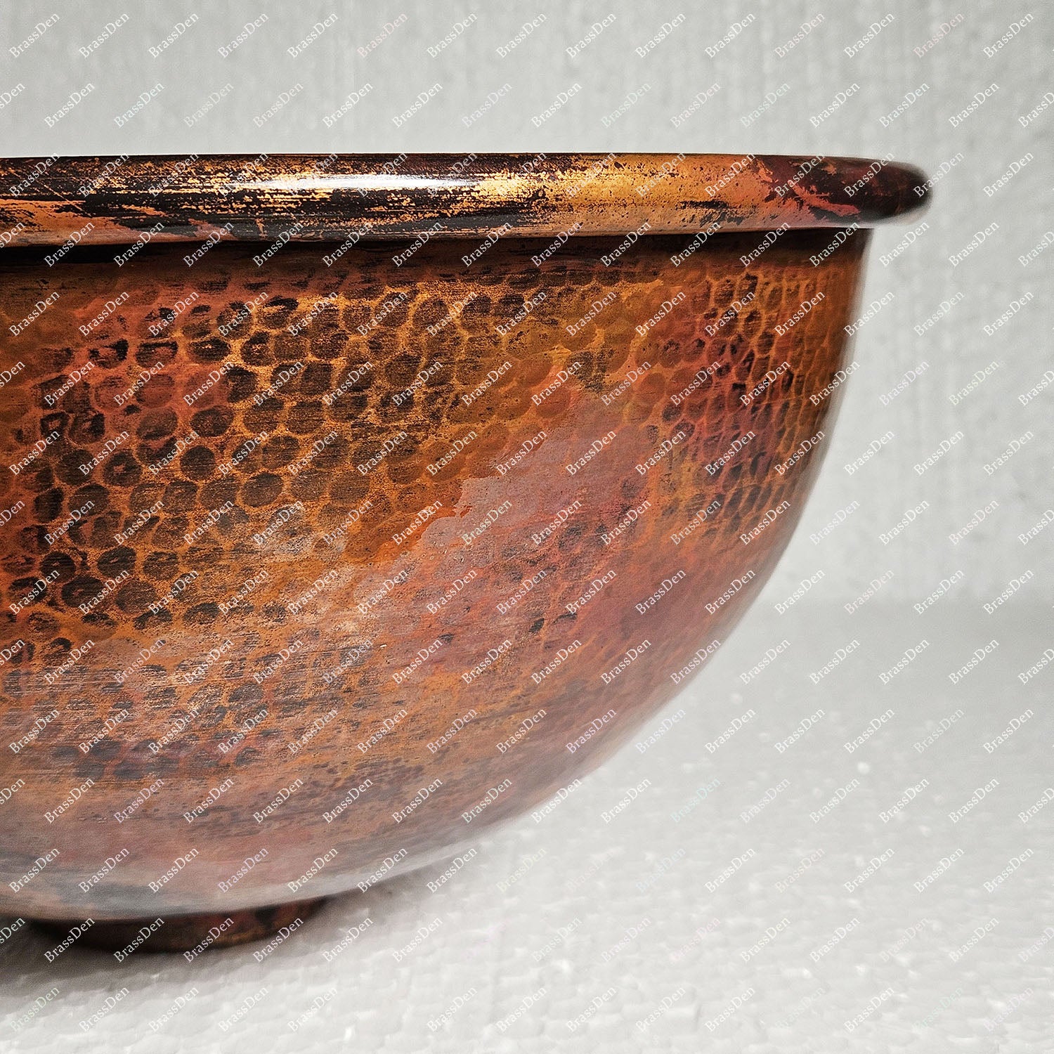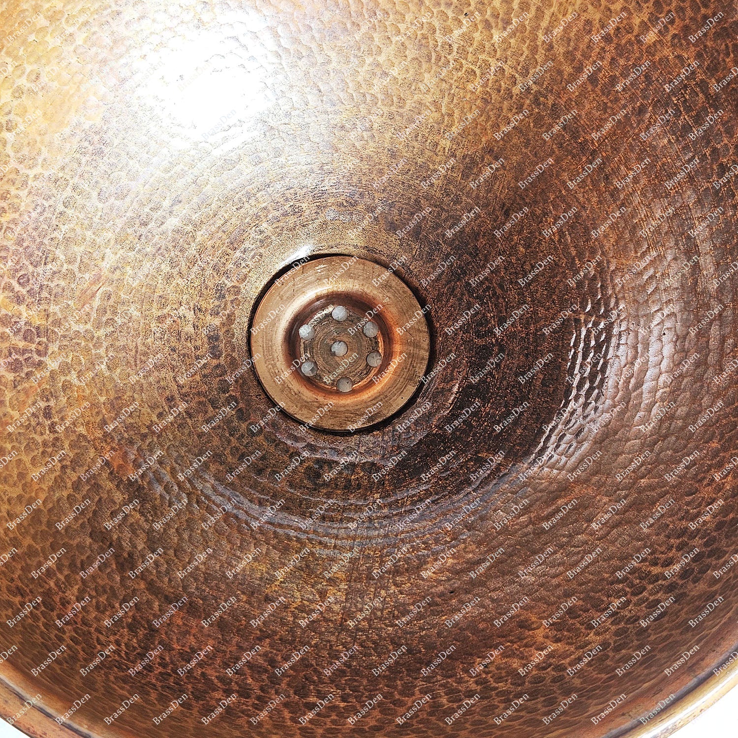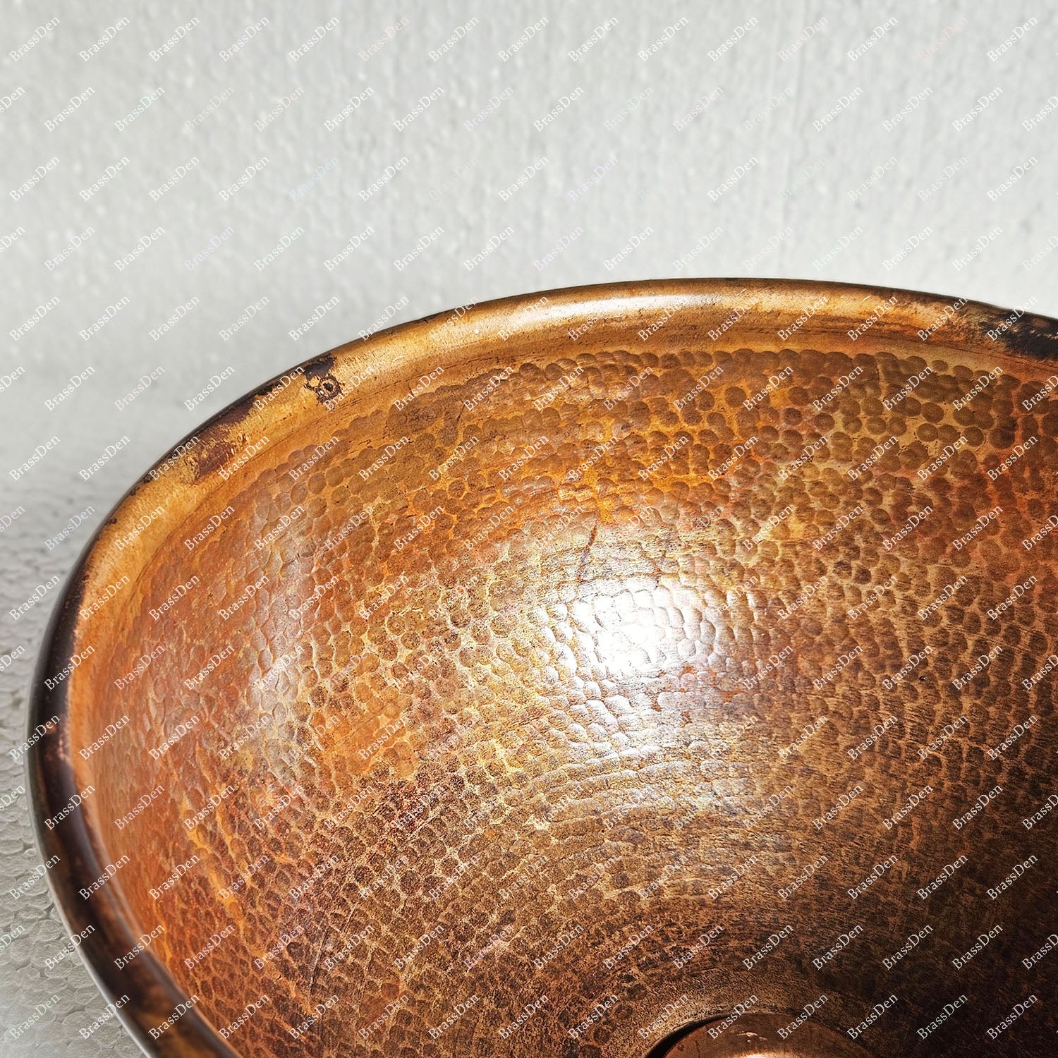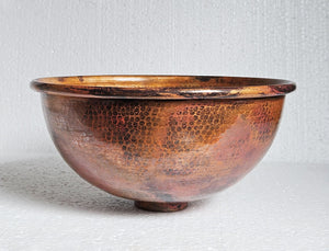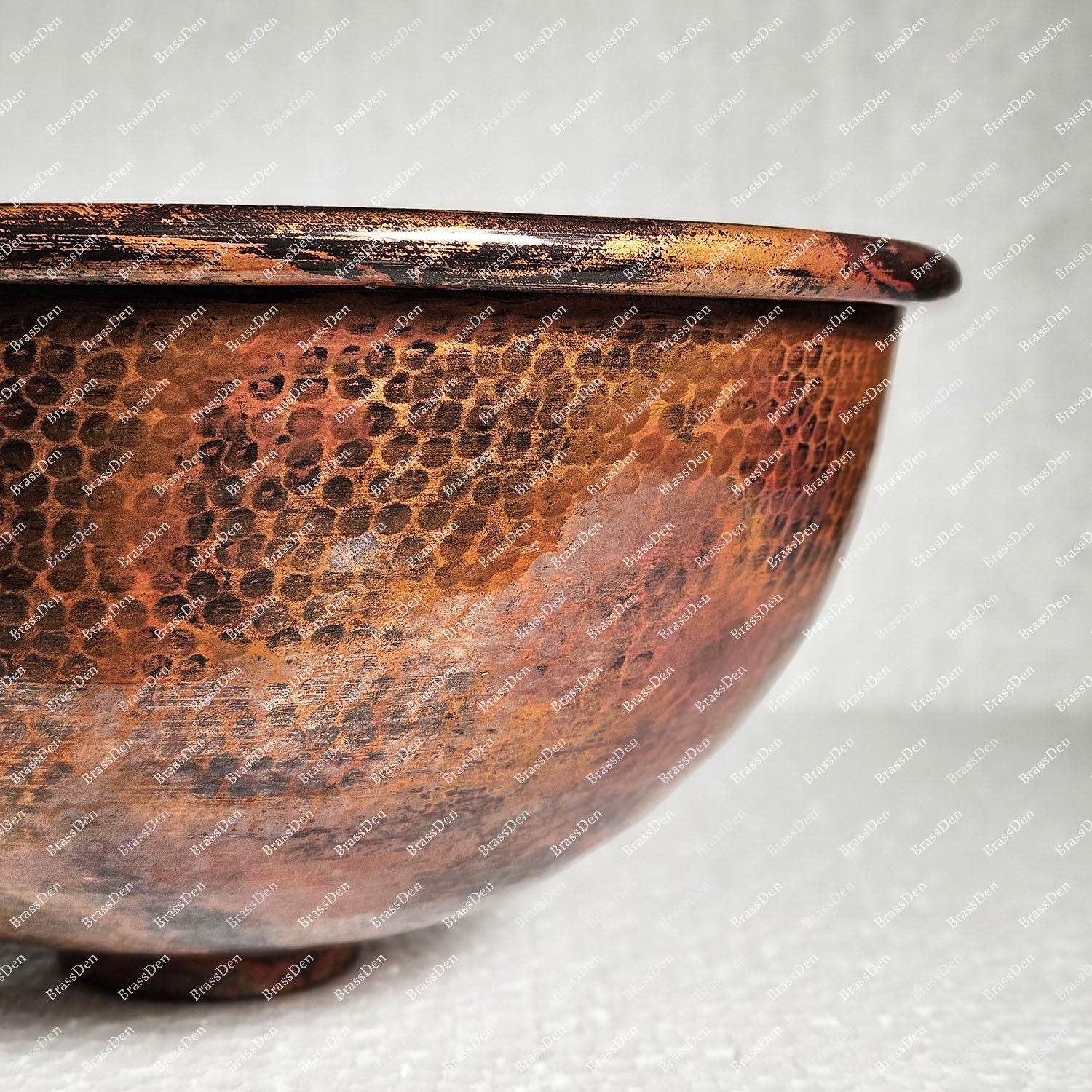 Round Rustic Copper Bathroom Sink, Aged Copper Hammered Copper Vessel Sink