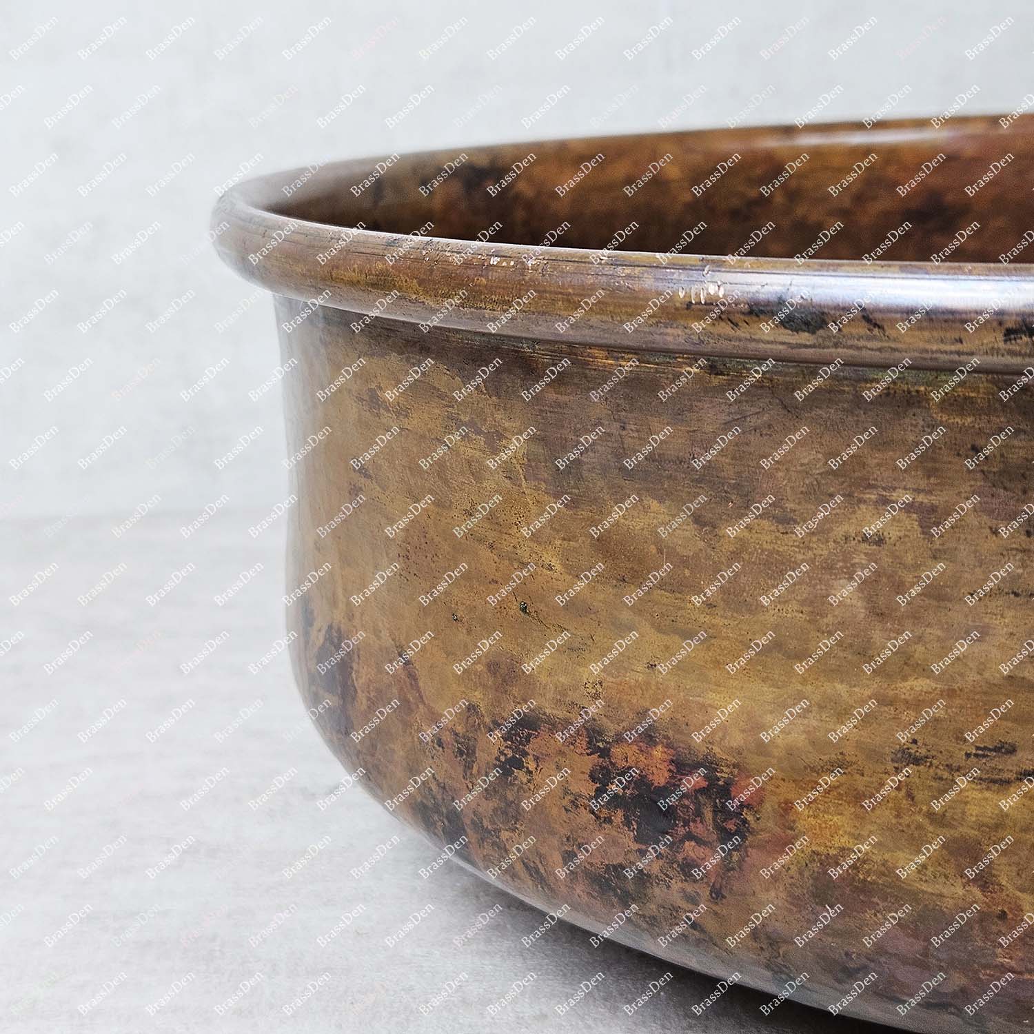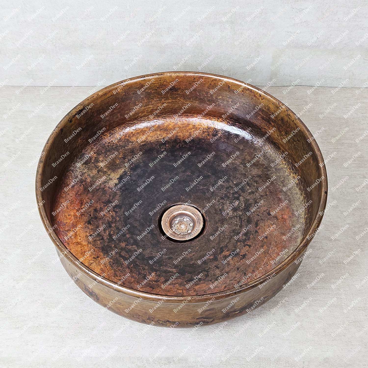 Rustic Patina Copper Bathroom Vessel Sink – Round Dark Copper Wash Basin