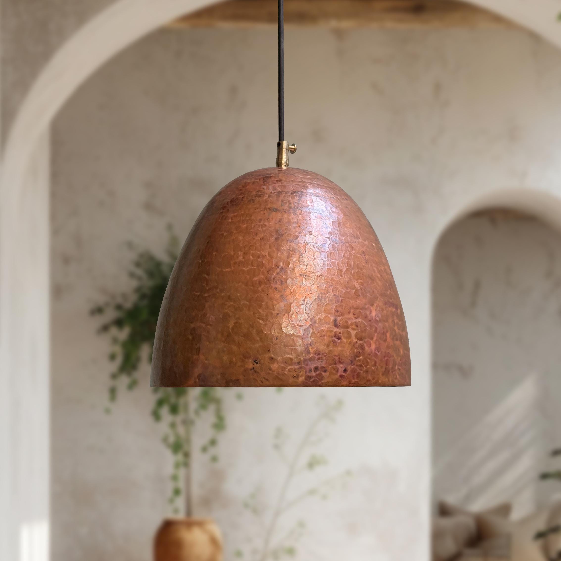 Set of 2 Handmade Copper Pendant Lights – Oxidized Hammered Dome Kitchen Fixtures