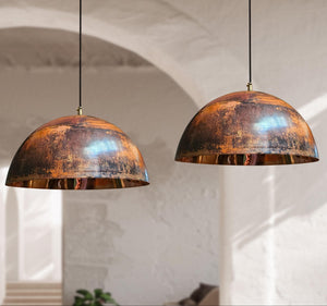 Set of 2 Rustic Copper Dome Ceiling Lights – Vintage Pendant Kitchen Fixtures
