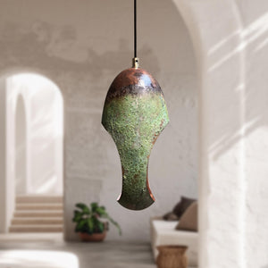 Set of 3 Handcrafted Green Patina Copper Pendant Lights – Oxidized Farmhouse Fixtures