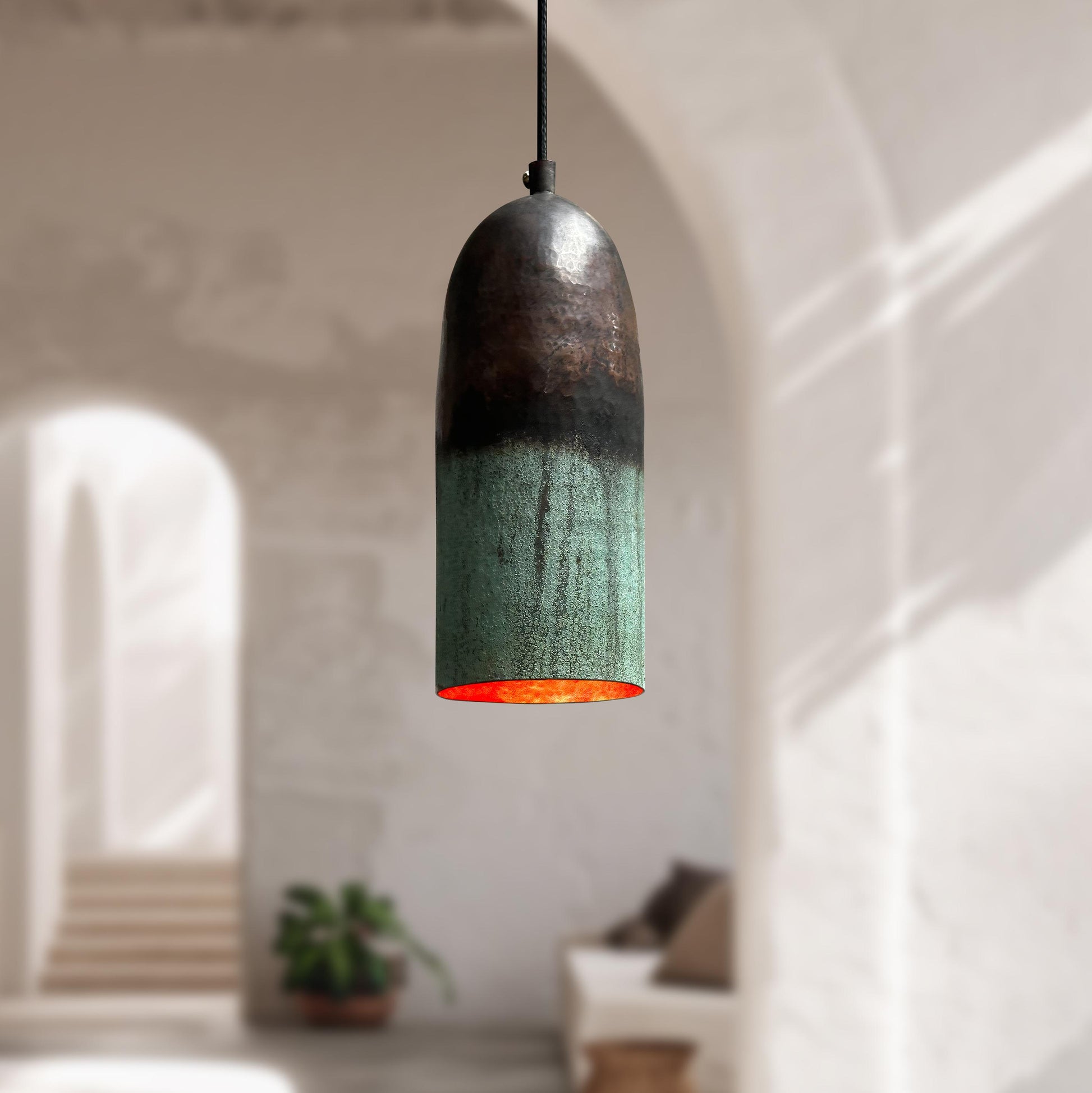 Set of 3 Oxidized Copper Pendant Lights – Green Patina Farmhouse Kitchen Island Lighting
