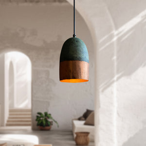 Set of 3 Oxidized Copper Pendant Lights – Green Patina Handmade Ceiling Fixtures