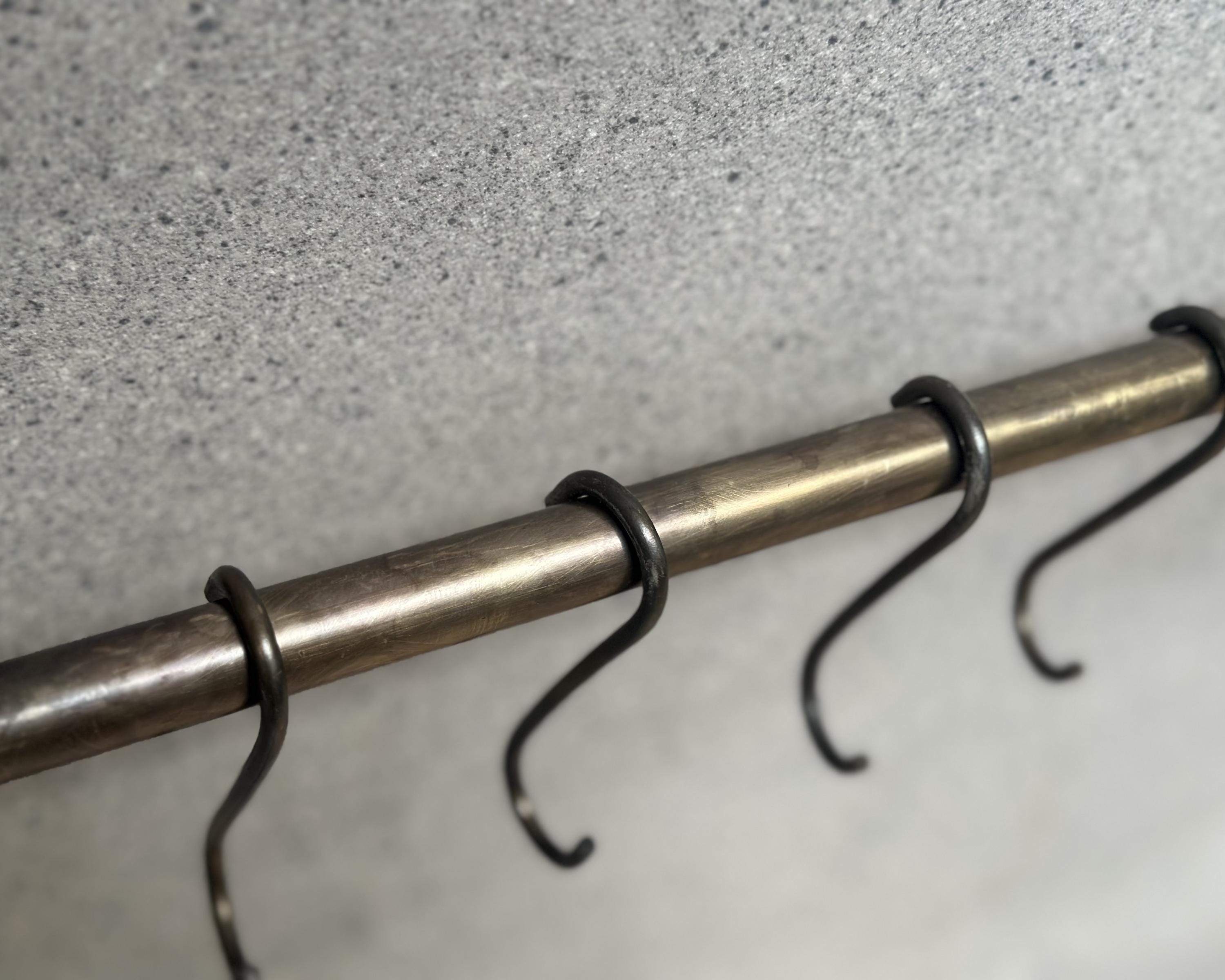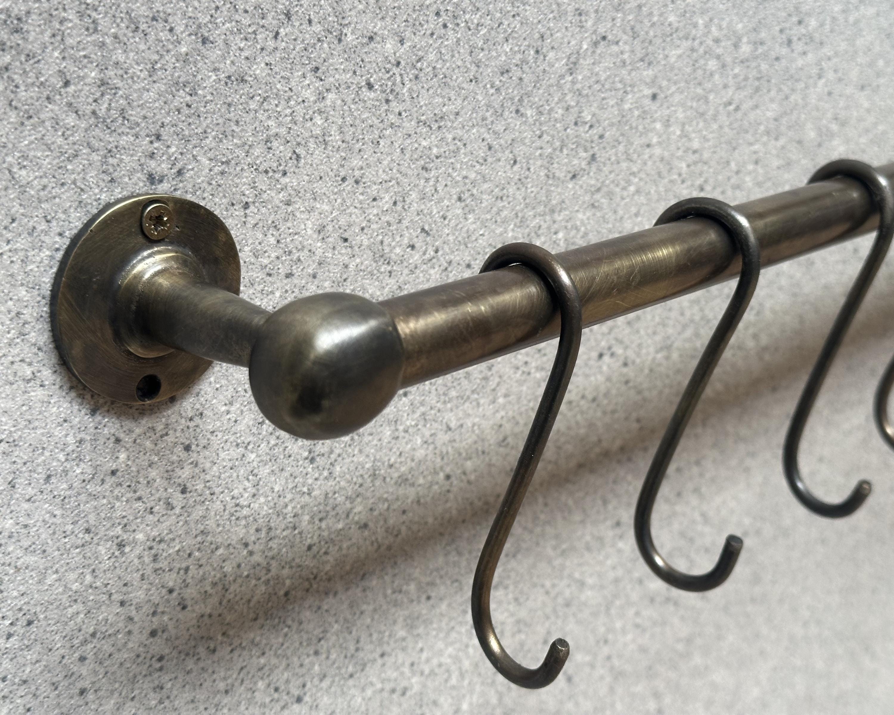 Solid Bronze Pot Rail with Hooks – Oil Rubbed Brass Wall-Mounted Kitchen Organizer