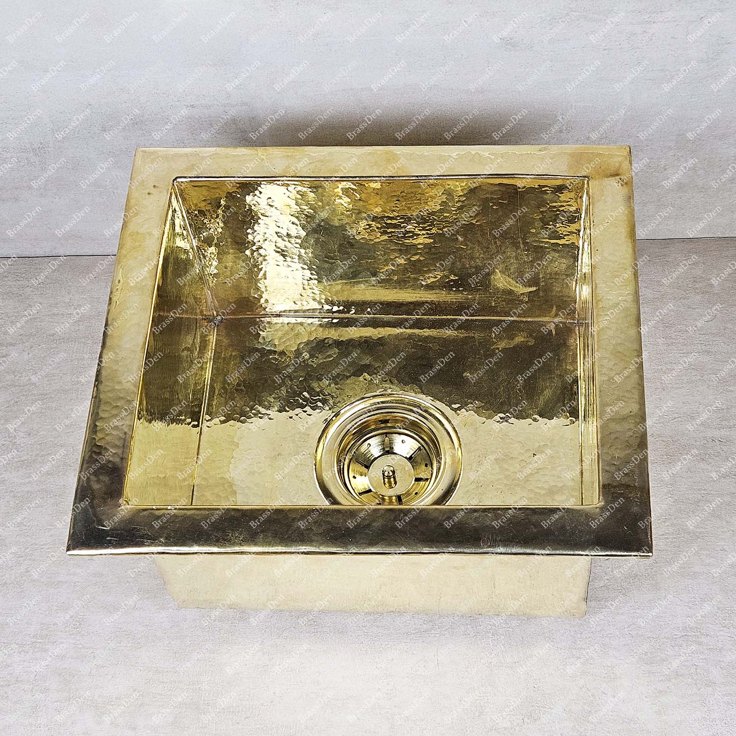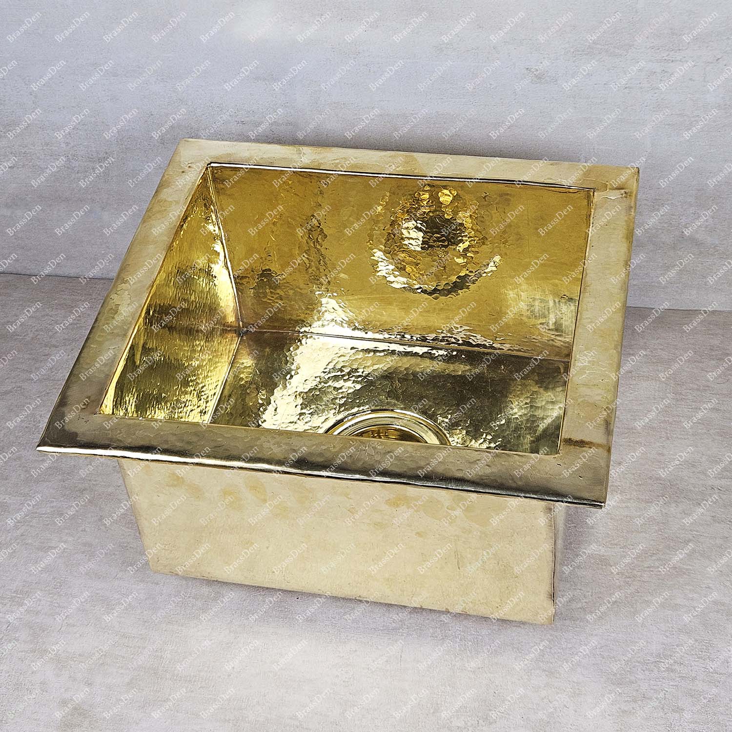 Squared Brass Kitchen Sink – Square Bar Vanity with Brass Interior Basin