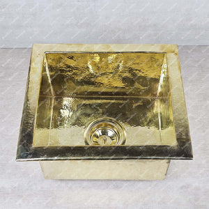 Squared Hammered Brass Kitchen Sink Vanity, Square Brass Bar Sink, Hammered Brass Interior Basin