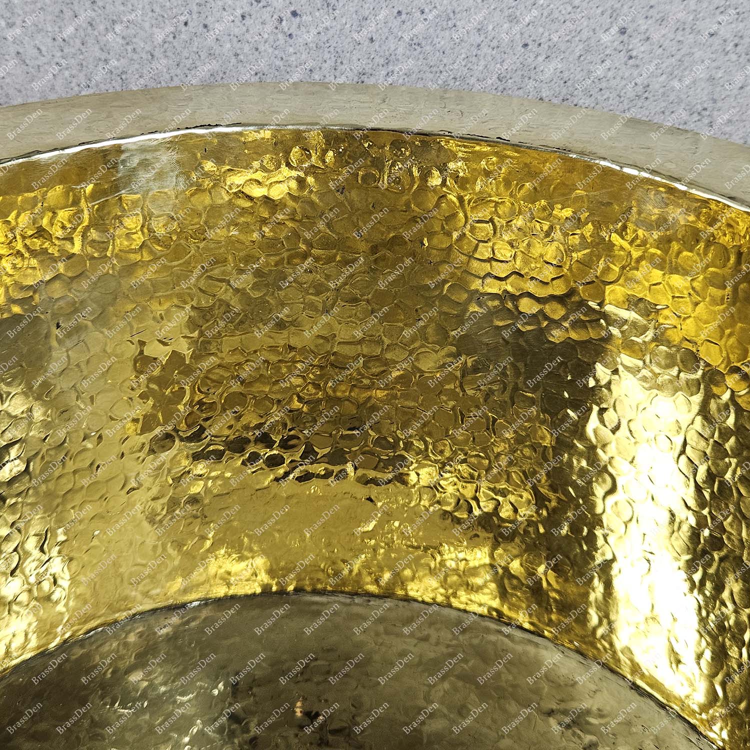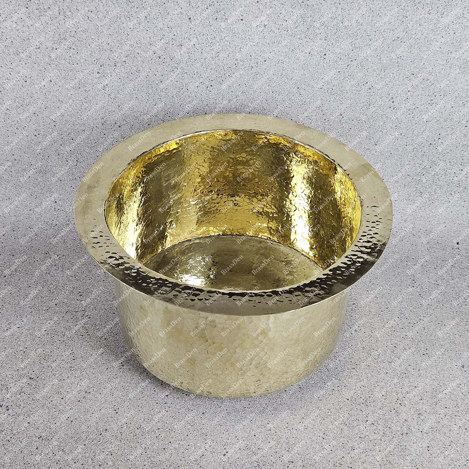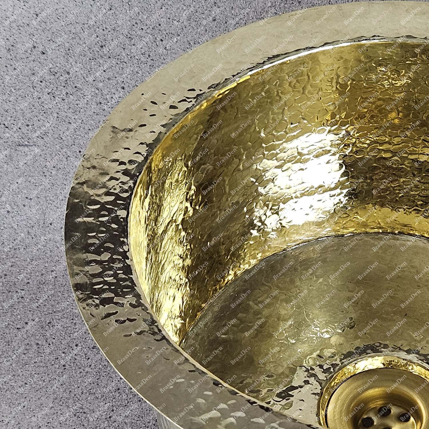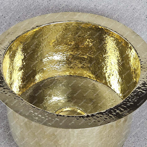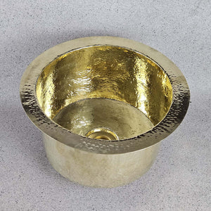 Unlacquered Hammered Brass Round Bar Sink, Handmade Brass Drop in Sink with Drain