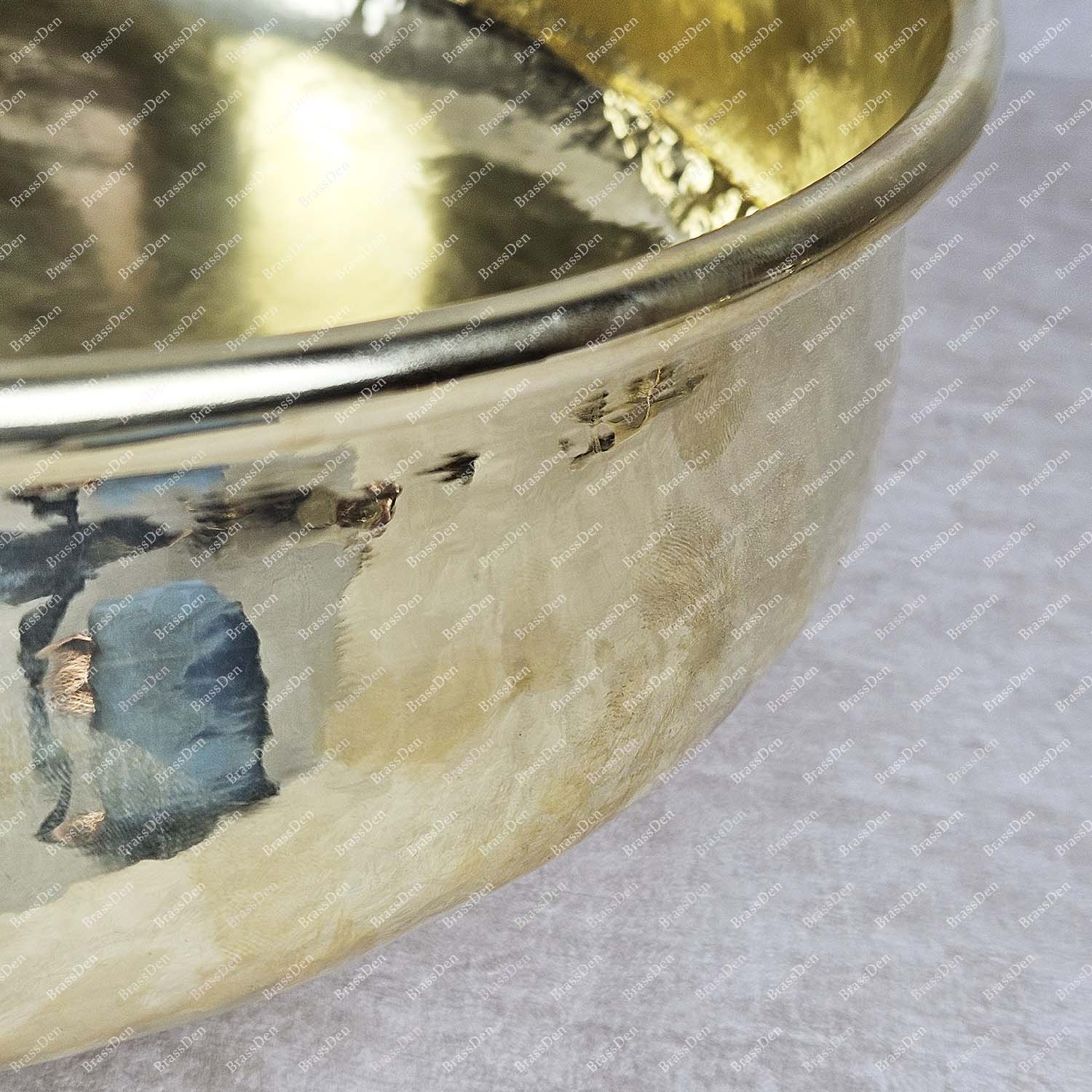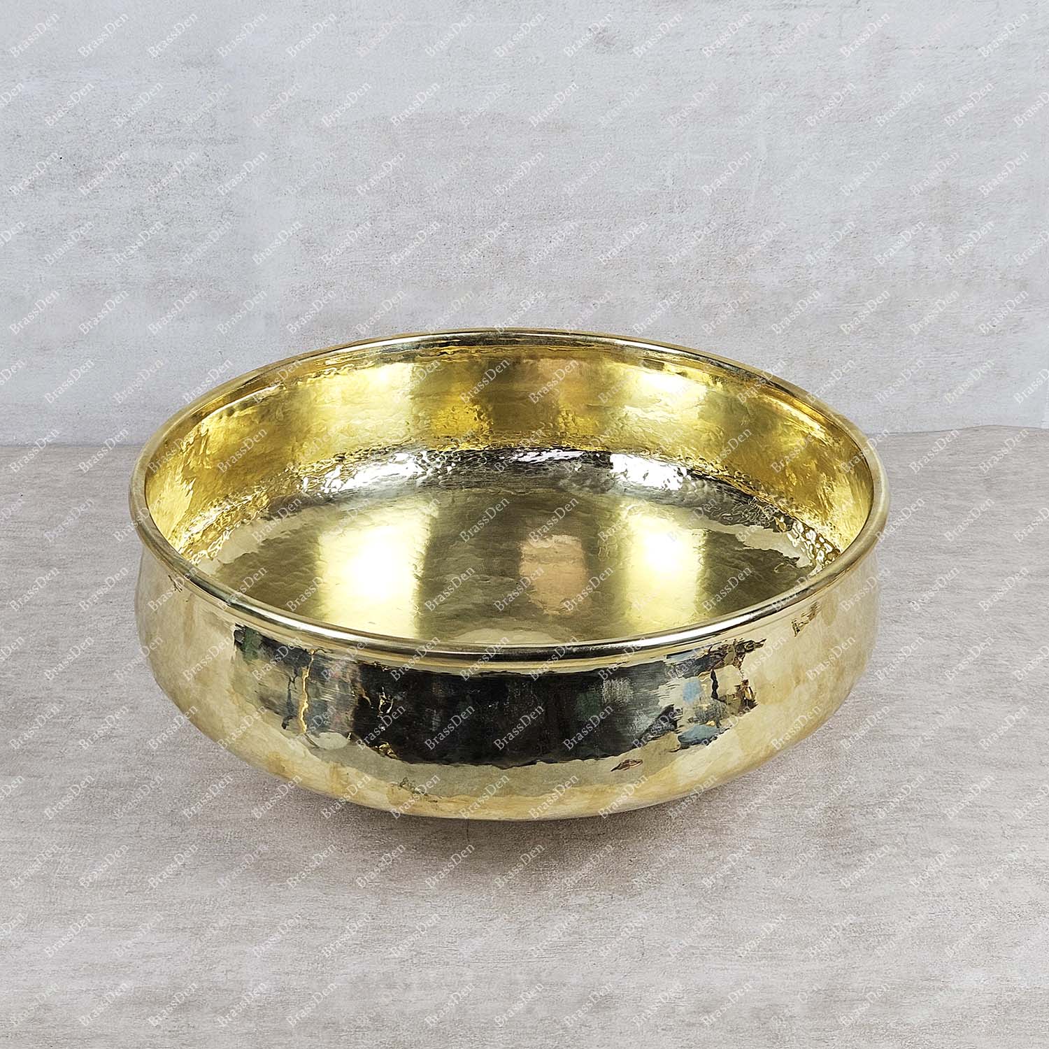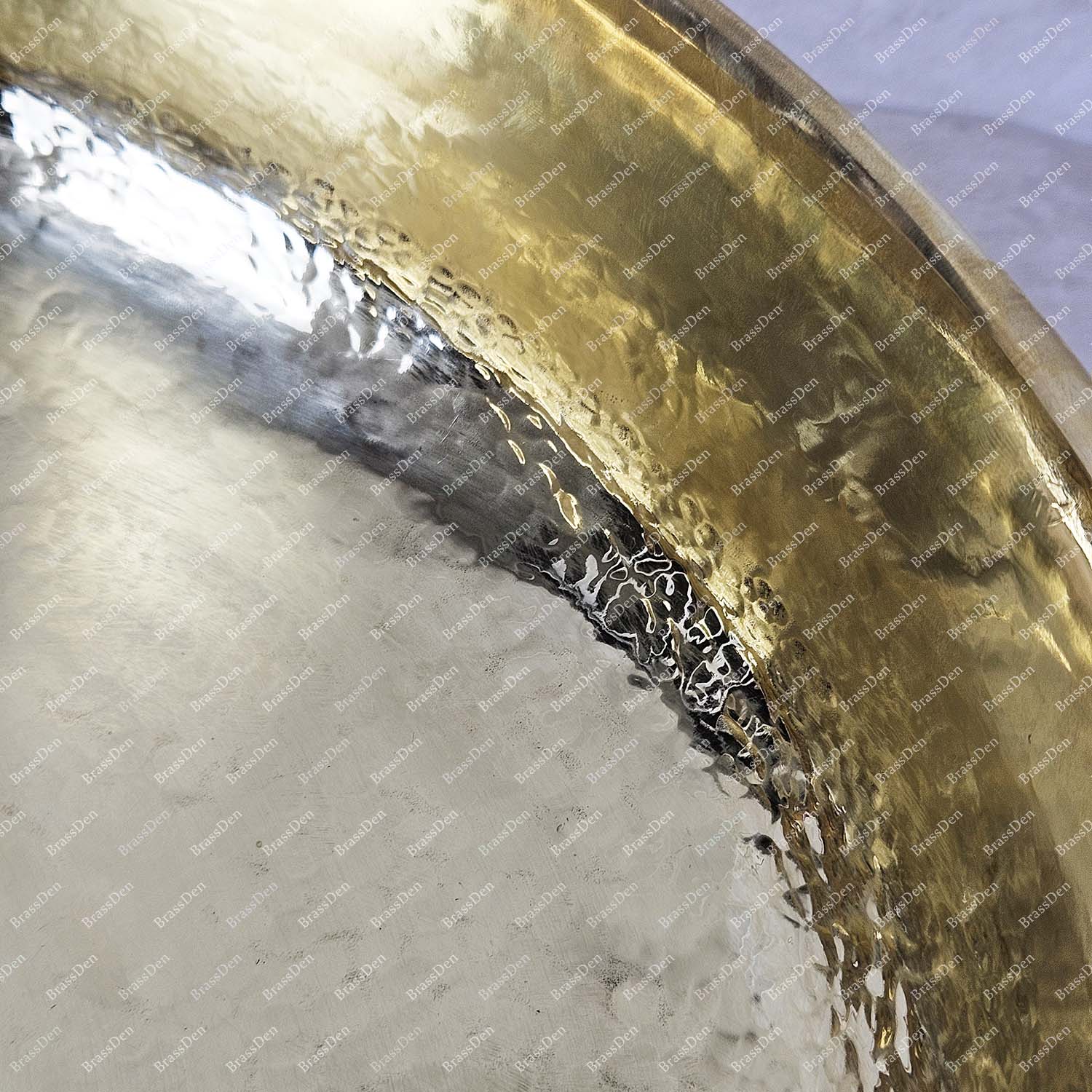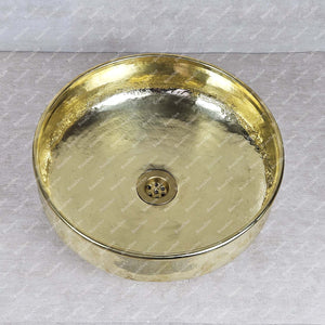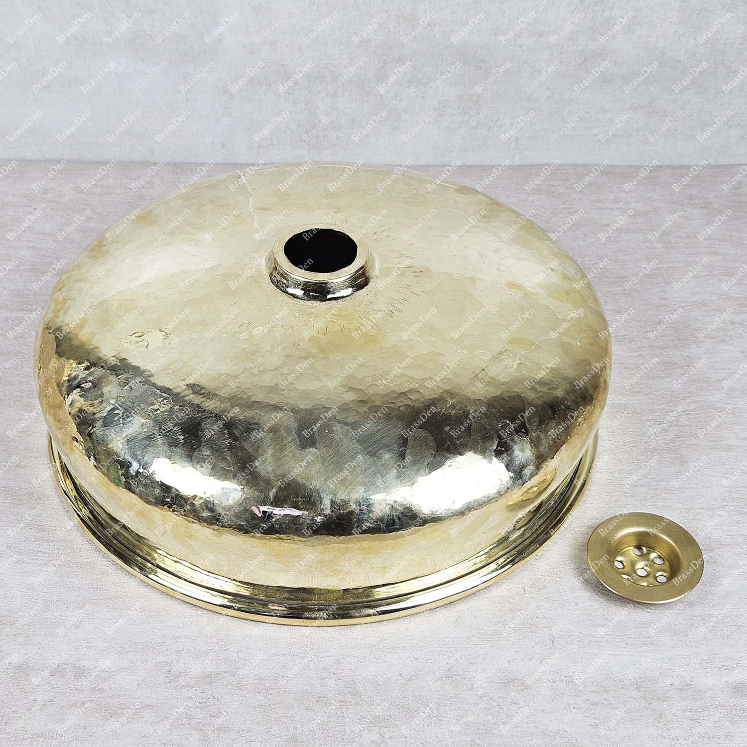 Unlacquered Round Brass Bathroom Sink – Handmade Hammered Vessel with Brass Drain