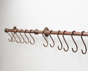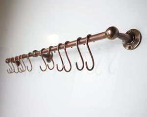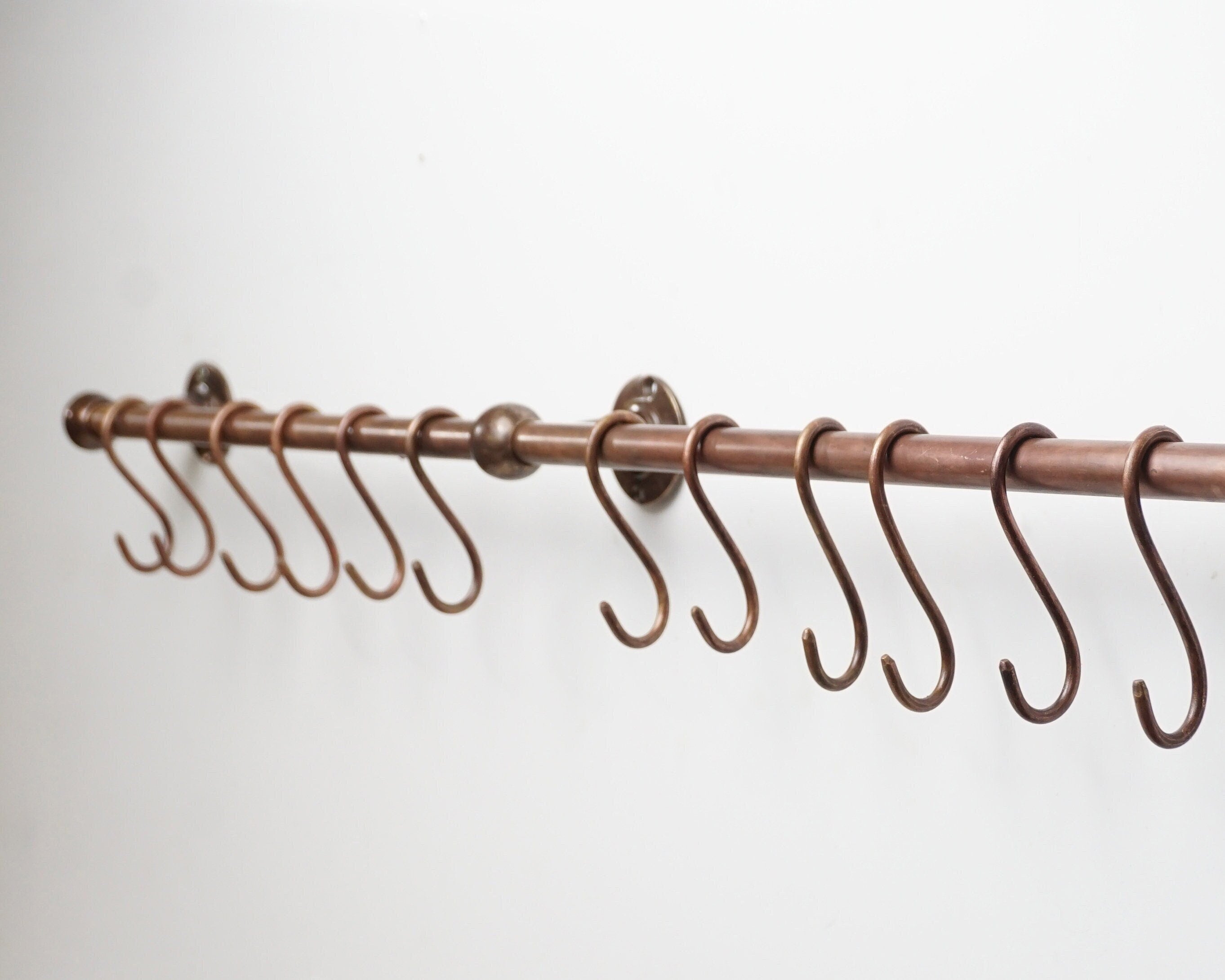 Wall-Mounted Kitchen Rail with Hooks – Bronze & Brass Pot Rack